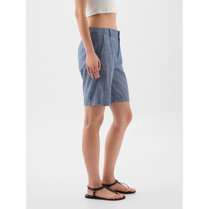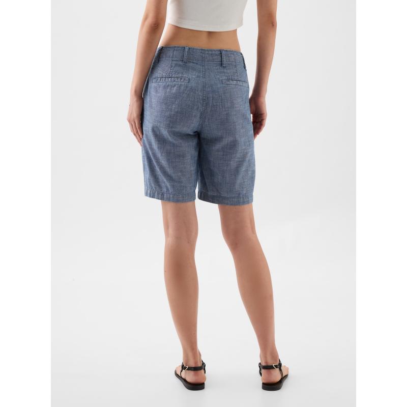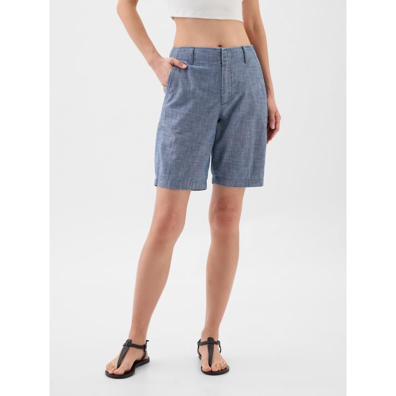 Stylové a pohodlné dámské kraťasy.Hladká chambray tkanina - lehká, měkká a prodyšná tkanina z bavlny, vzhledem podobná džínovině, ale jemnější a pohodlnější, ideální pro letní oděvy.Zapínání na háček a očko se zipem.Přední kapsy.Středně vysoký pas.Úzký střih přes boky a stehna.Délka vnitřního švu 23 cm. 100 % bavlna