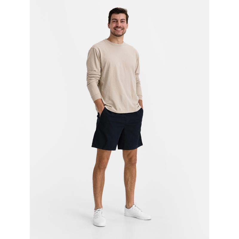 Pánské bavlněné kraťasy se spandexem.Boční kapsy, jednobarevné.Délka vnitřního švu 18 cm. 98 % bavlna, 2 % elastan