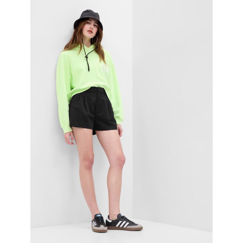 Kraťasy s pevným pasem.Speciální kolekce pro dospívající.Vysoký pas s poutky na pásek.Skryté zapínání na háček a zip.Přední šikmé kapsy.V pase nabírané. 95 % Tencel Lyocell, 5 % nylon