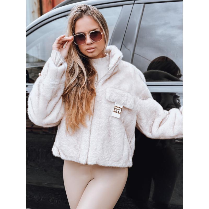 Krátká dámská kožešinová bunda, bílá