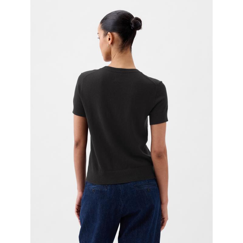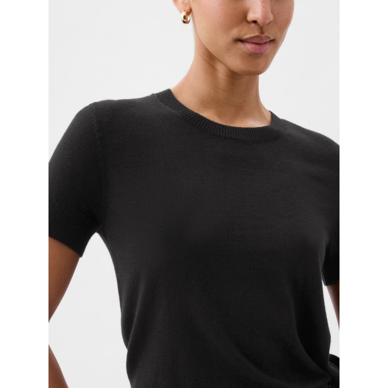 Dámský svetr s krátkým rukávem.Pružný žebrovaný lemy.Kulatý výstřih.Měkká hladká pletenina.Modelka má na sobě velikost S. Míry: výška 180 cm, pas 66 cm, boky 97 cm. 55 % bavlna, 25 % polyester, 20 % nylon