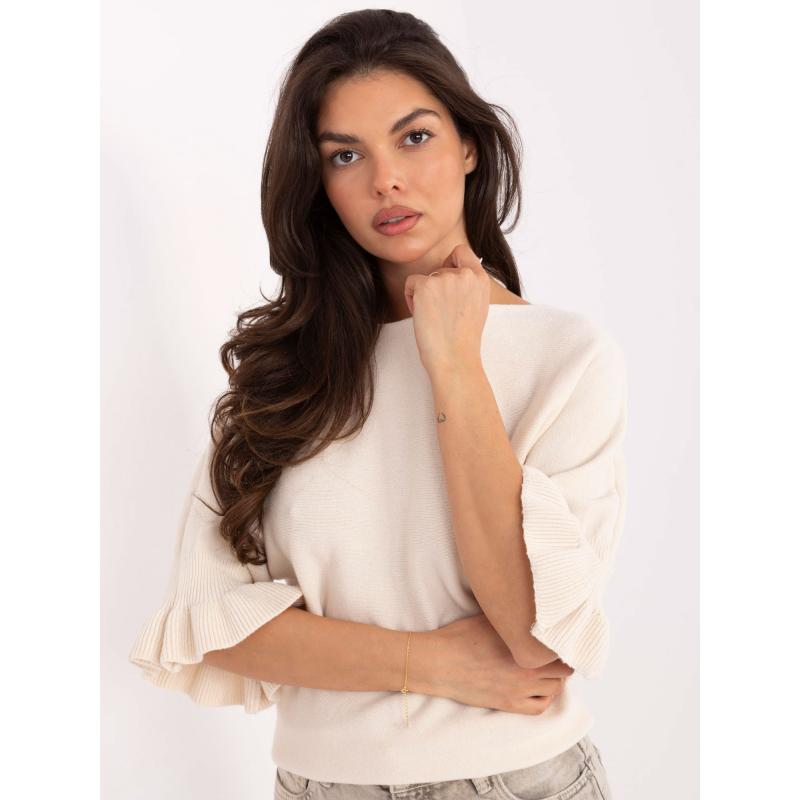 Krém színű női pulóver 3/4-es ujjakkal