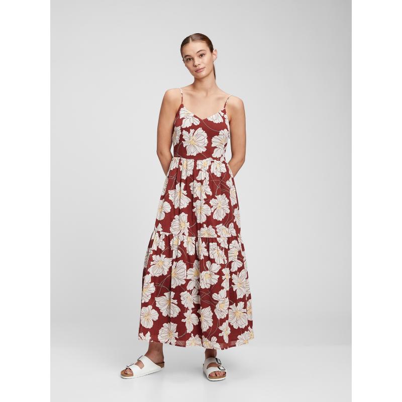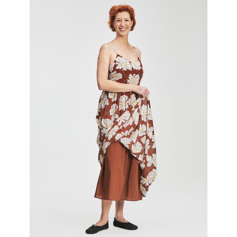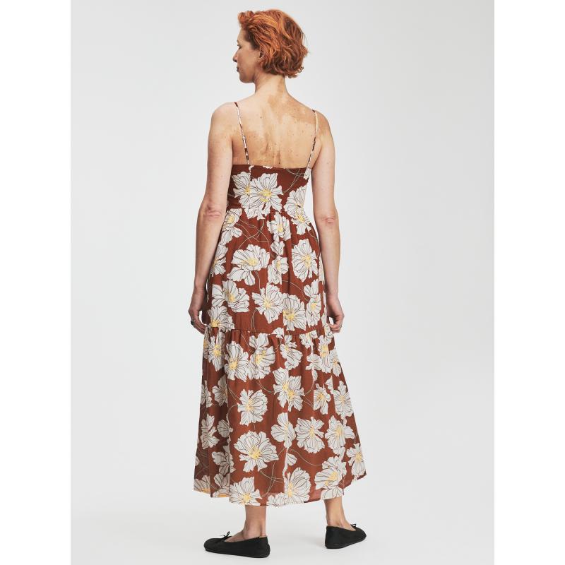 Dámské šaty s v maxi délce.Pěkné šaty s květy.Přiléhavý vršek s úzkými ramínky.Volnější dlouhá sukně s nabíraným volánem.Unosíte do práce i na procházky.100% bavlna. 100 % bavlna