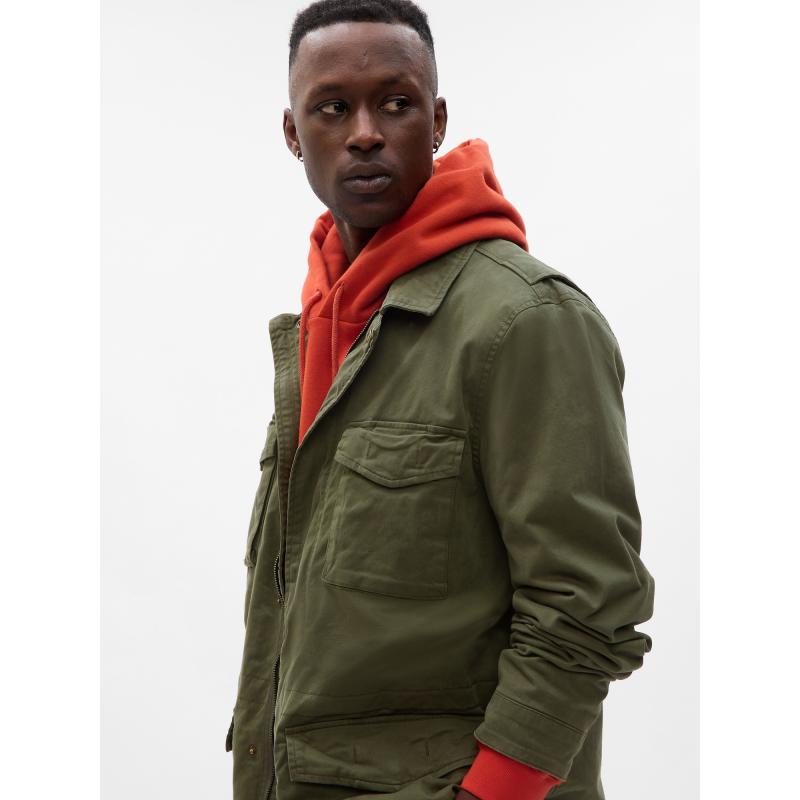 Pánská jednobarevná bunda.Se zapínáním na zip.Našité velké kapsy s klopou.Dlouhé rukávy. 98 % regenerativní bavlna, 2 % elastan