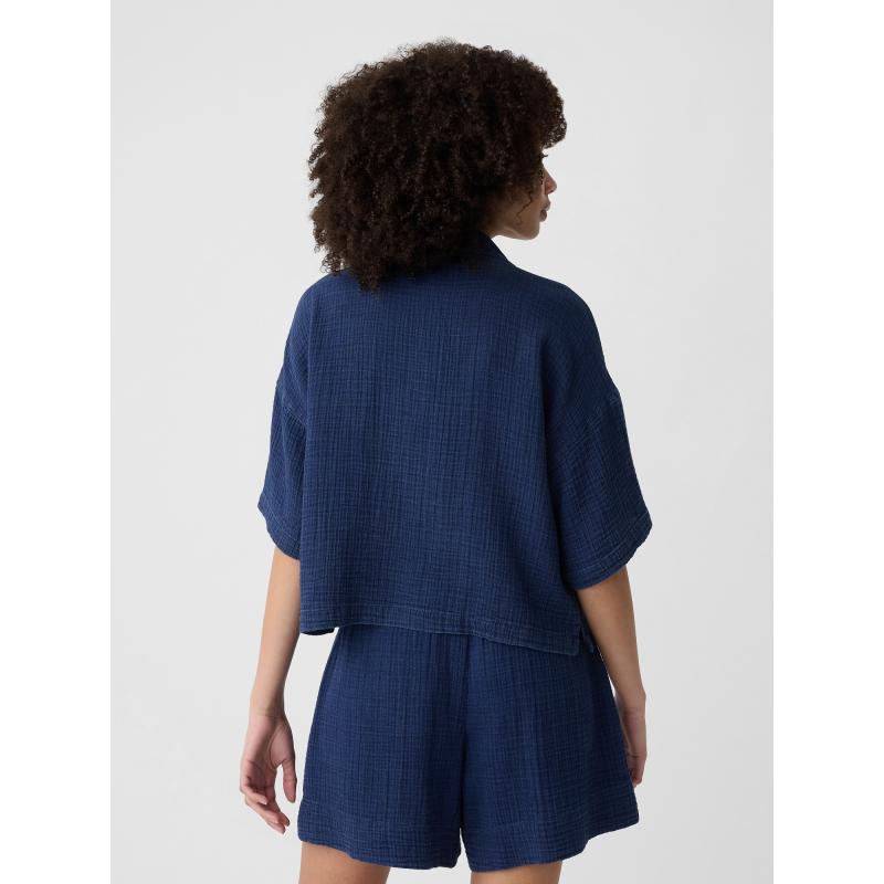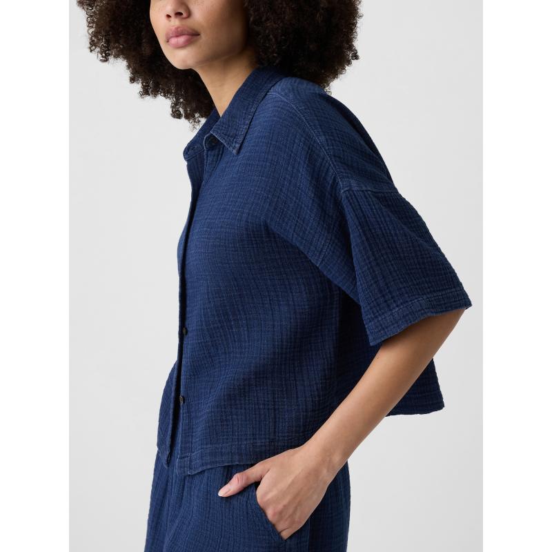 Lněná crop košile