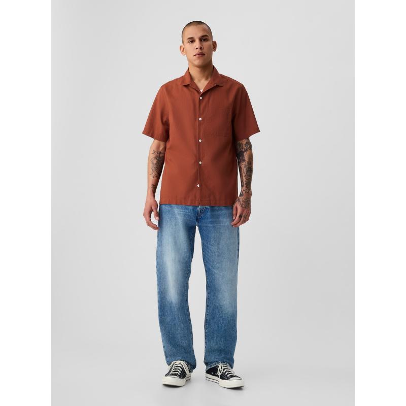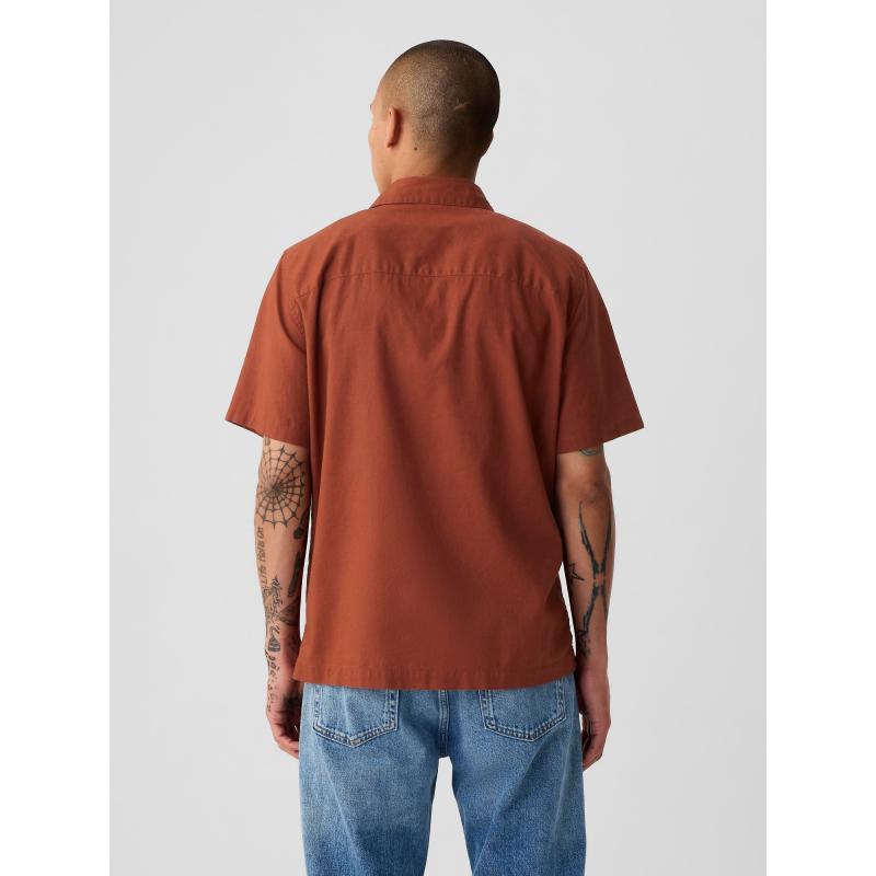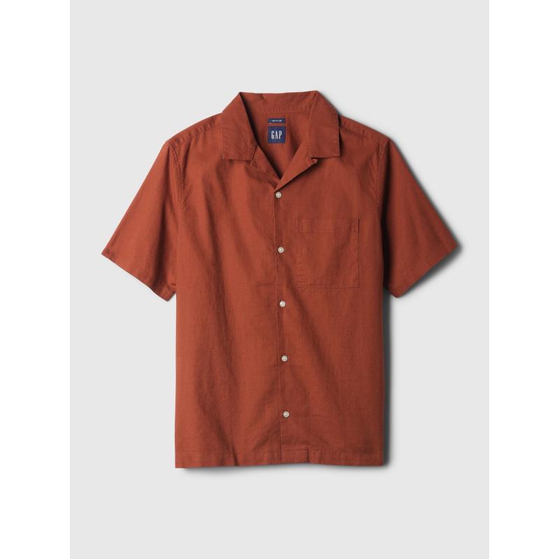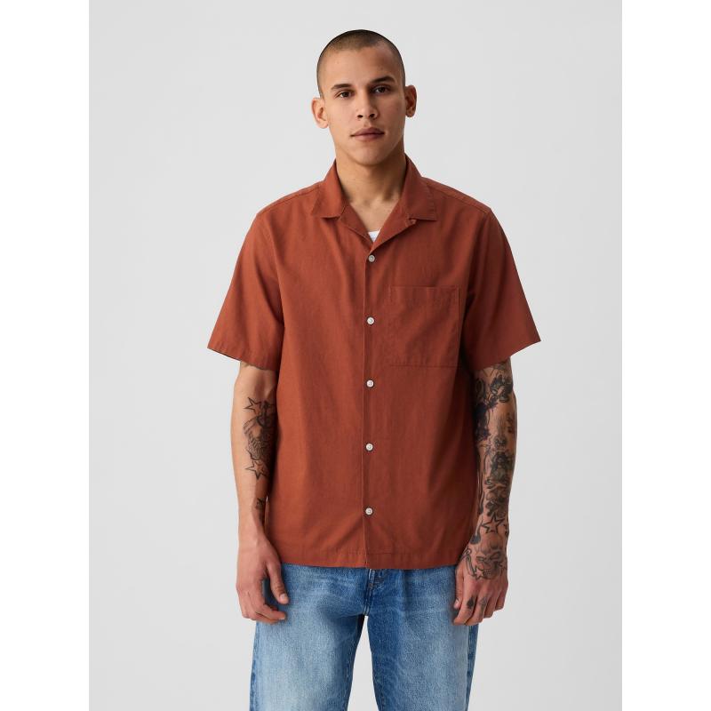 Pánská lněná košile.Límeček a zapínání na knoflíky.Krátké rukávy a rovný střih.Směs lnu a bavlny. 55 % len, 45 % bavlna