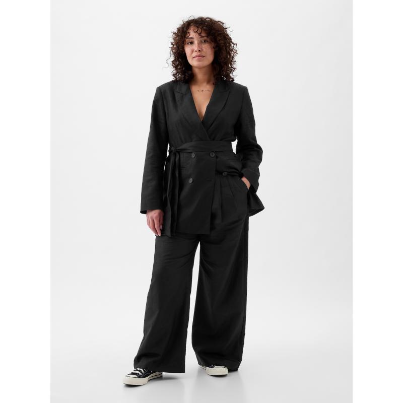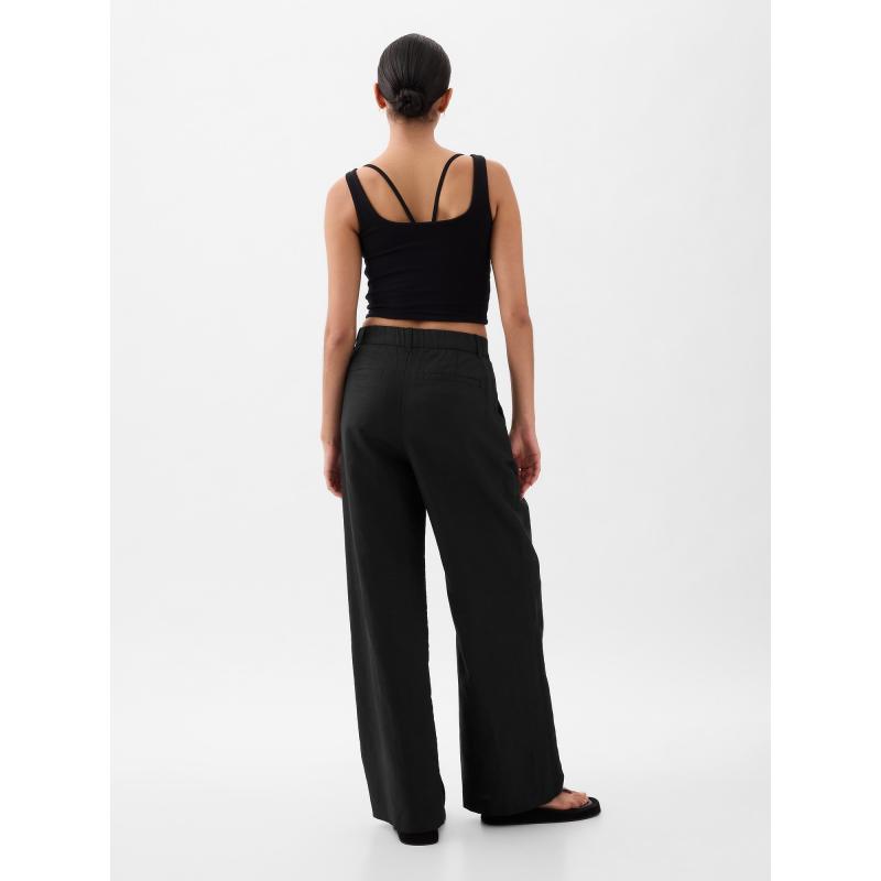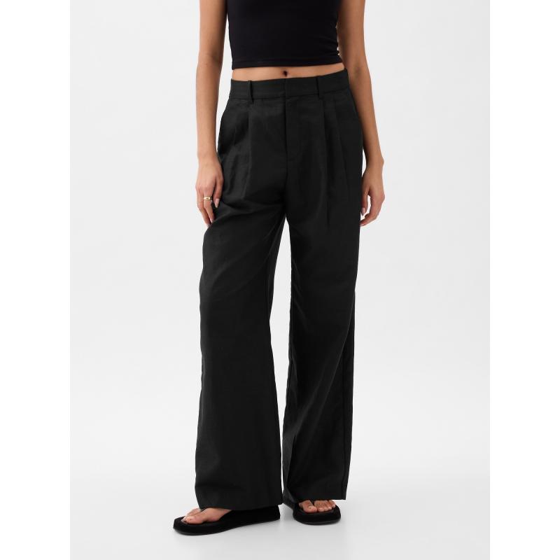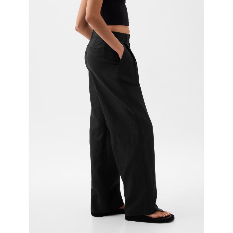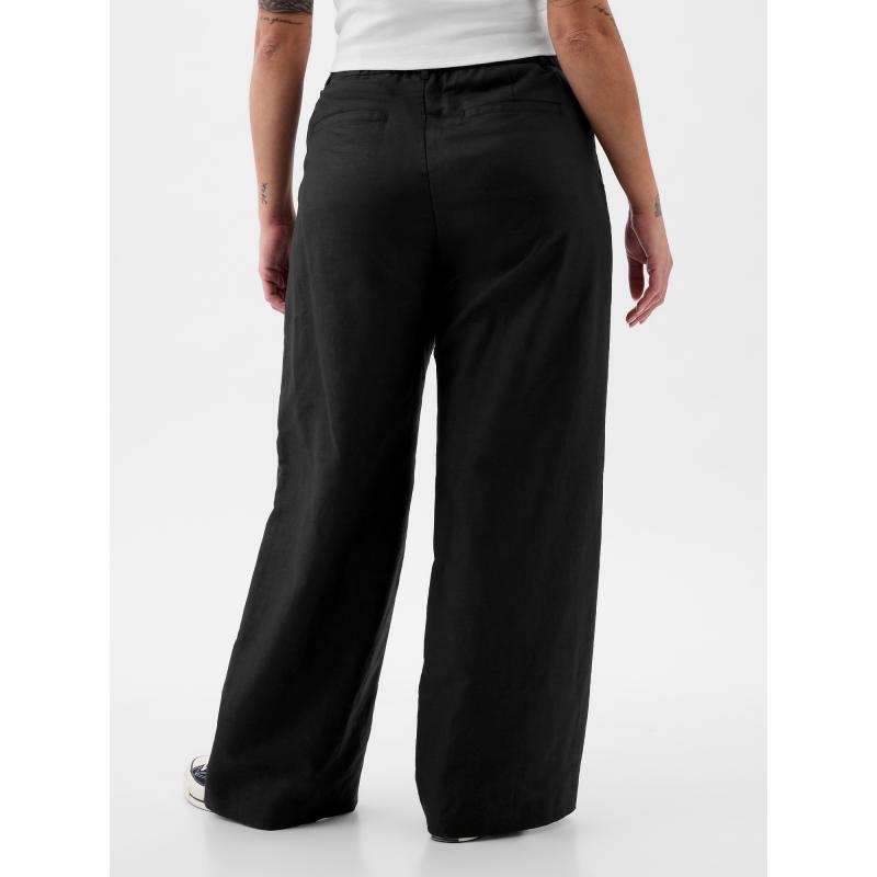 Dámské volné kalhoty.Pružný pas s poutky na pásek.Přední šikmé kapsy a zadní kapsy.Volný střih nohavic.Materiál len a bavlna.Modelka má na sobě velikost 4. Míry: výška 180 cm, pas 66 cm, boky 97 cm.Modelka má na sobě velikost 16. Míry: výška 180 cm, pas 91 cm, boky 127 cm. 55 % len, 45 % bavlna