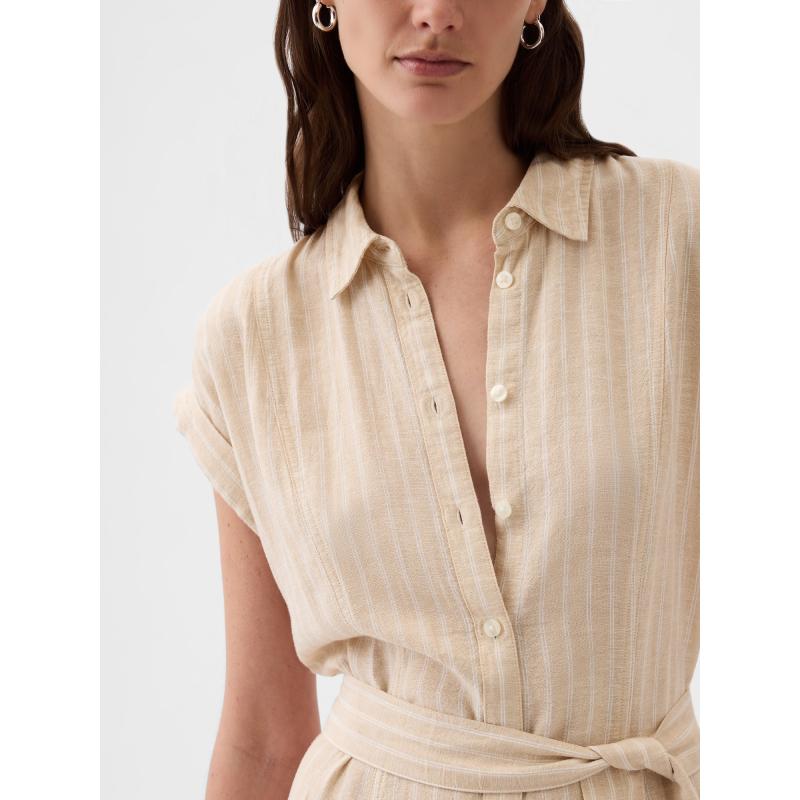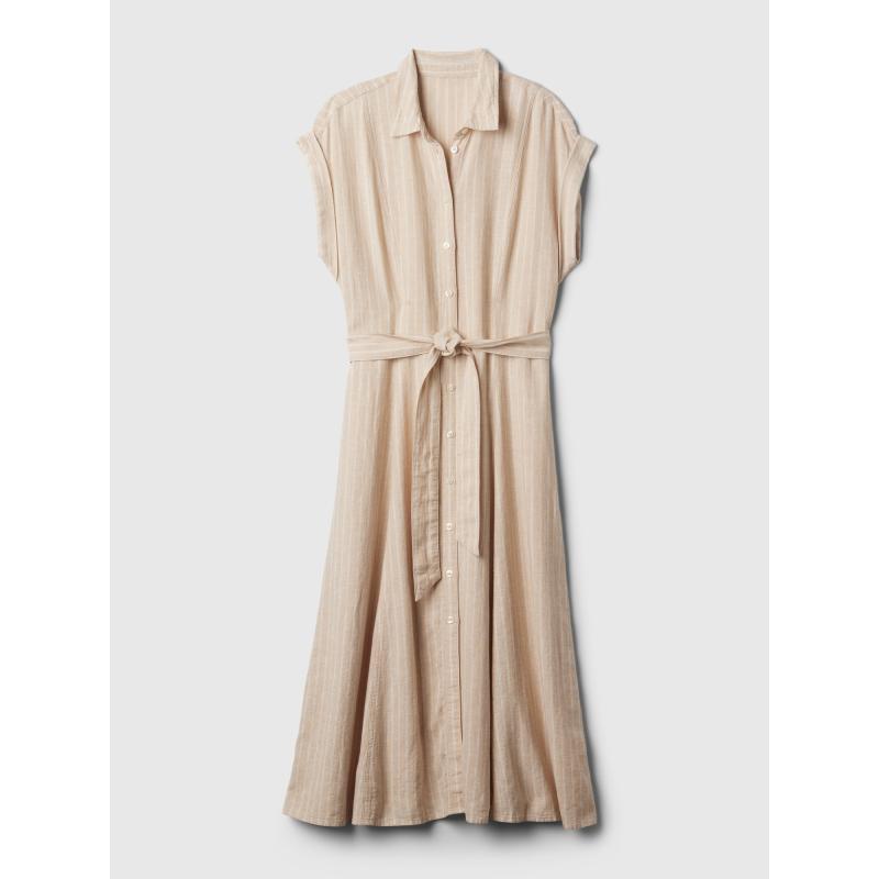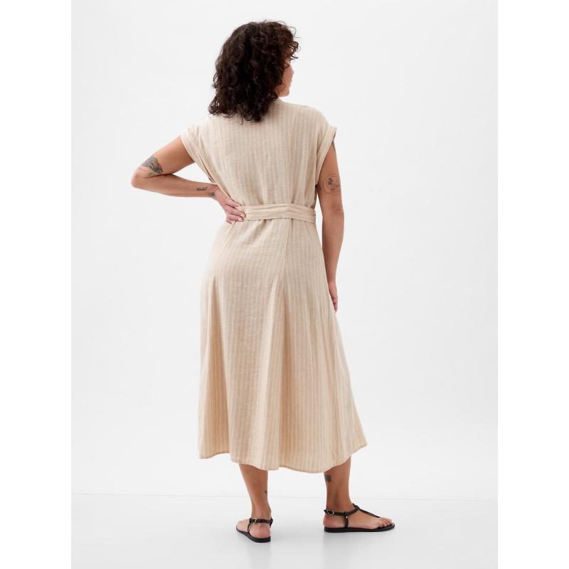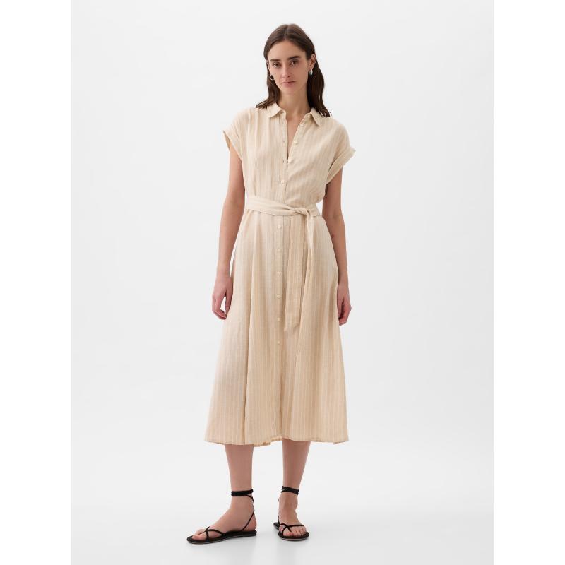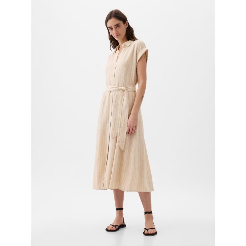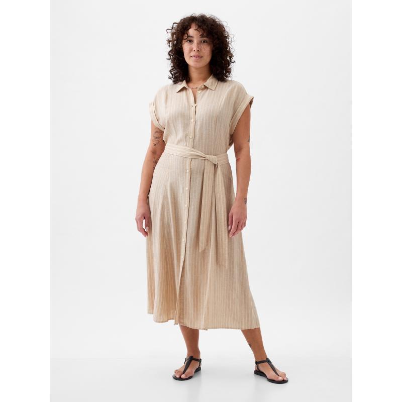 Lněné košilové midi šaty
