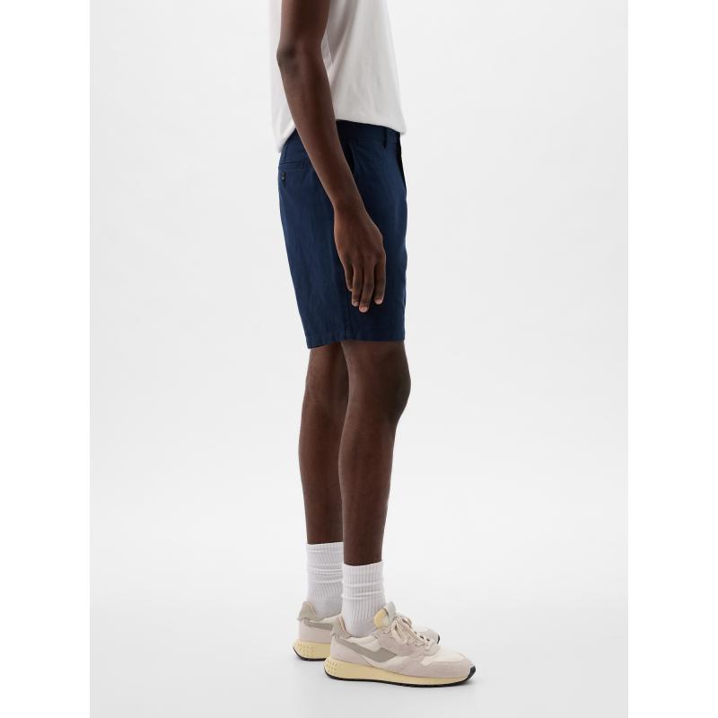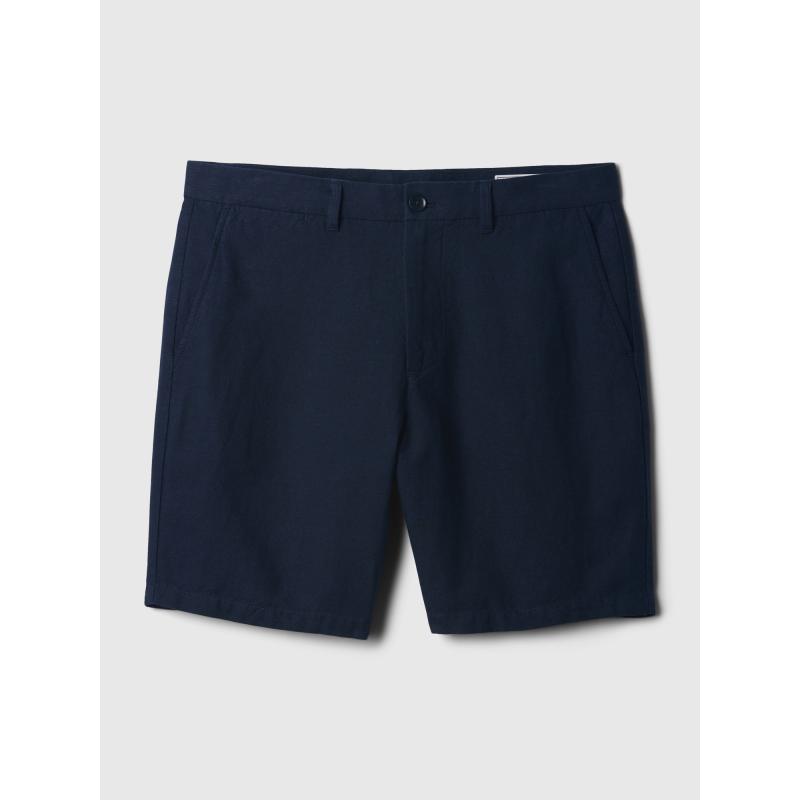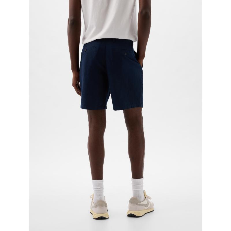 Pánské jednobarevné kraťasy.Materiál len a bavlna.Pevný pas s poutky na pásek.Zapínání na knoflík a zip.Boční šikmé kapsy.Zadní kapsy na knoflíky.Délka vnitřního švu 20 cm.Model má na sobě velikost 32x32.Míry: výška 145 cm, pas 79 cm 54 % len, 46 % bavlna
