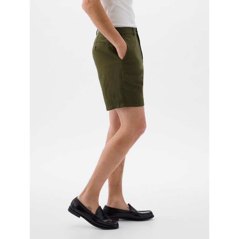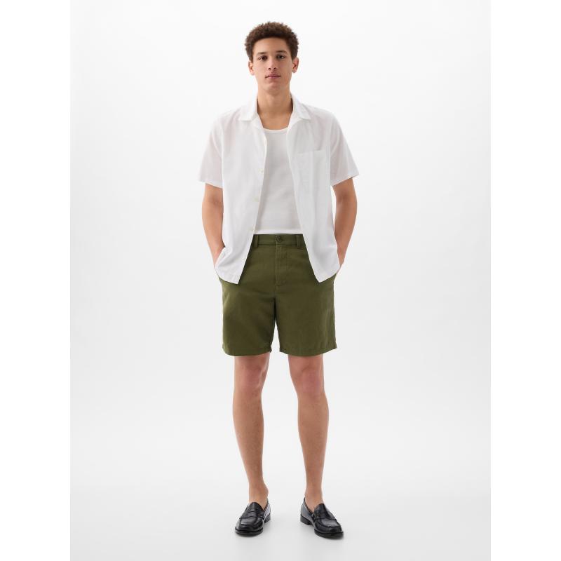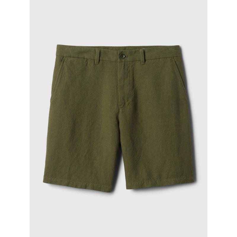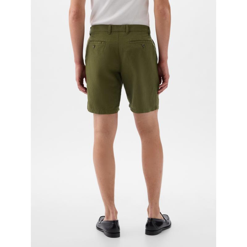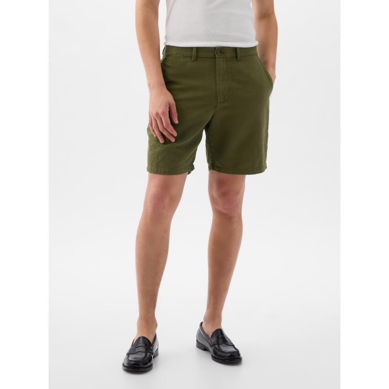 Pánské jednobarevné kraťasy.Materiál len a bavlna.Pevný pas s poutky na pásek.Zapínání na knoflík a zip.Boční šikmé kapsy.Zadní kapsy na knoflíky.Délka vnitřního švu 20 cm.Model má na sobě velikost 32x32.Míry: výška 145 cm, pas 79 cm 54 % len, 46 % bavlna