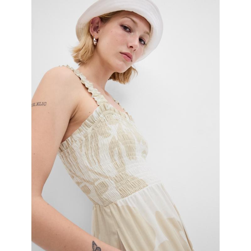 Dámské vzorované šaty.Horní díl s pružným řasením.Široká ramínka.S volánem a kapsami.Střih do A.Materiál len a viskóza. 55 % len, 45 % viskóza