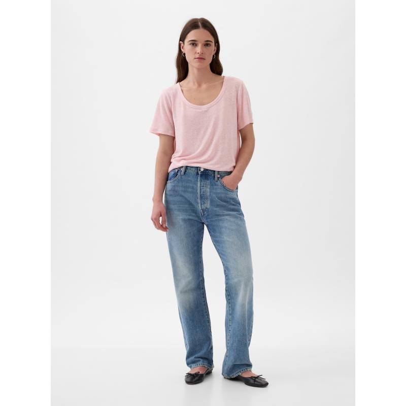 Dámské lněné tričko.S hlubokým výstřihem.Krátký rukáv a rovný střih.Materiál len a polyester. 52 % len, 48 % polyester
