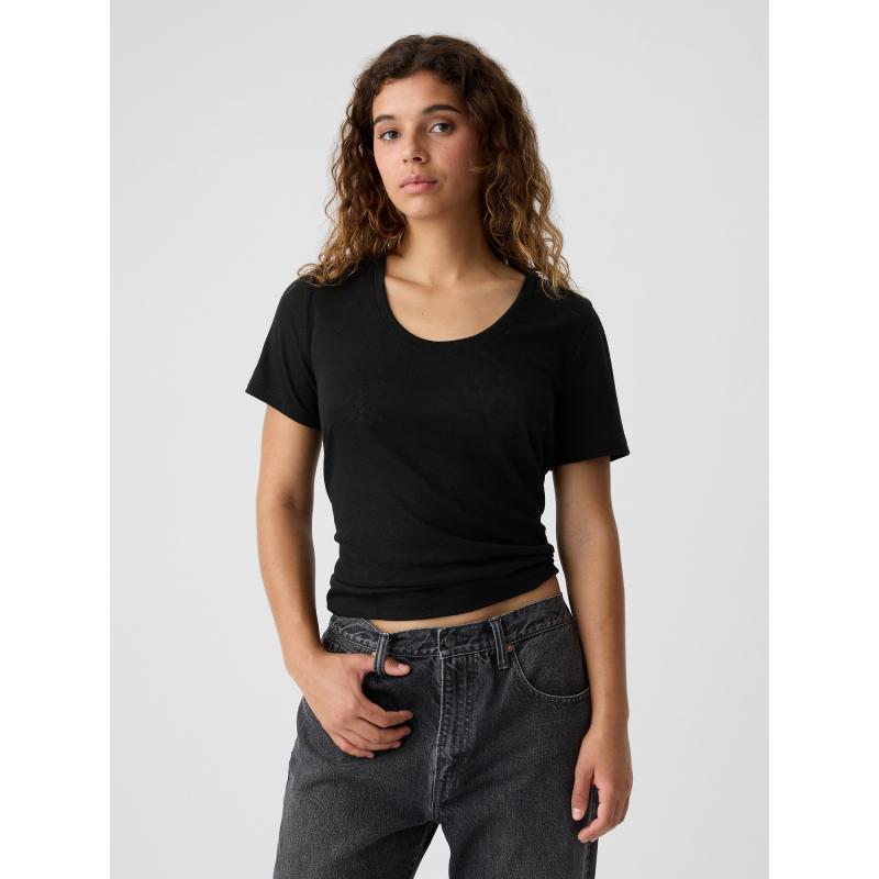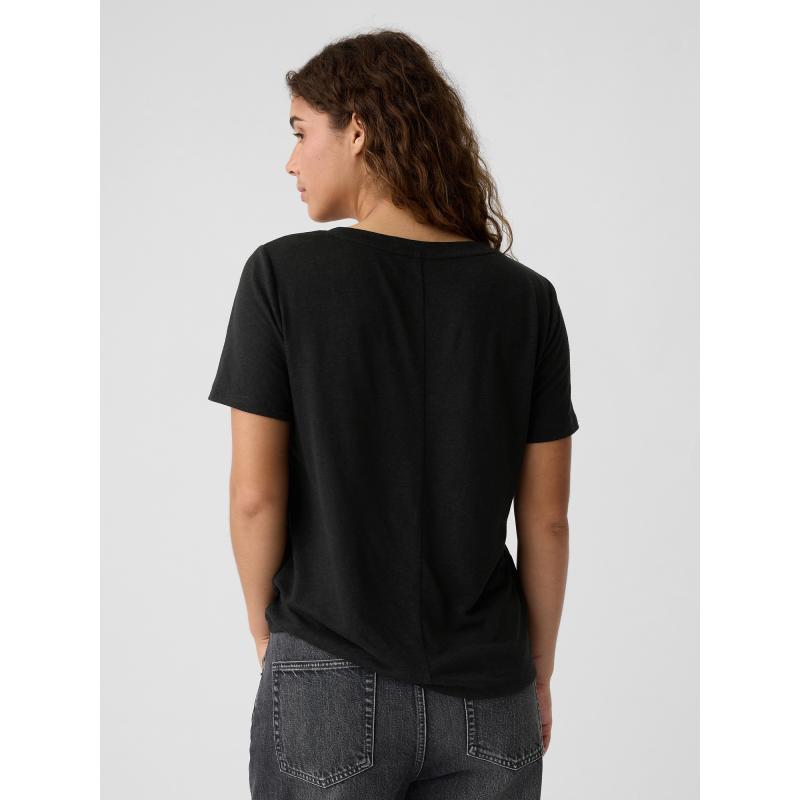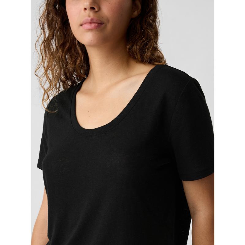 Dámské lněné tričko.S hlubokým výstřihem.Krátký rukáv a rovný střih.Materiál len a polyester. 52 % len, 48 % polyester