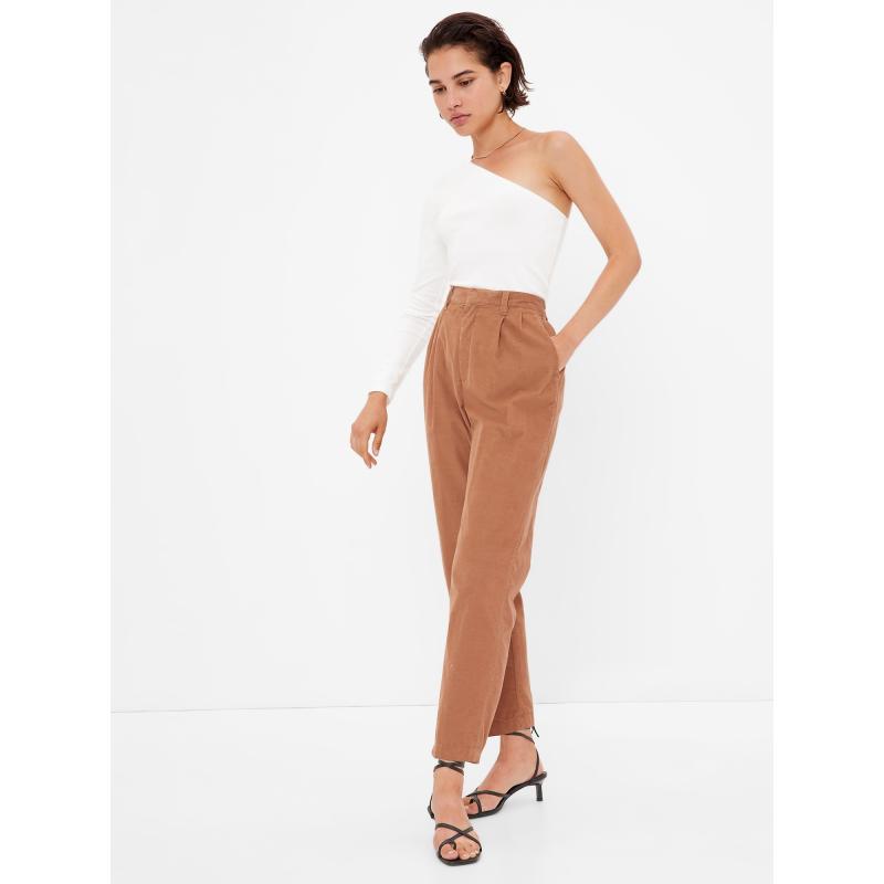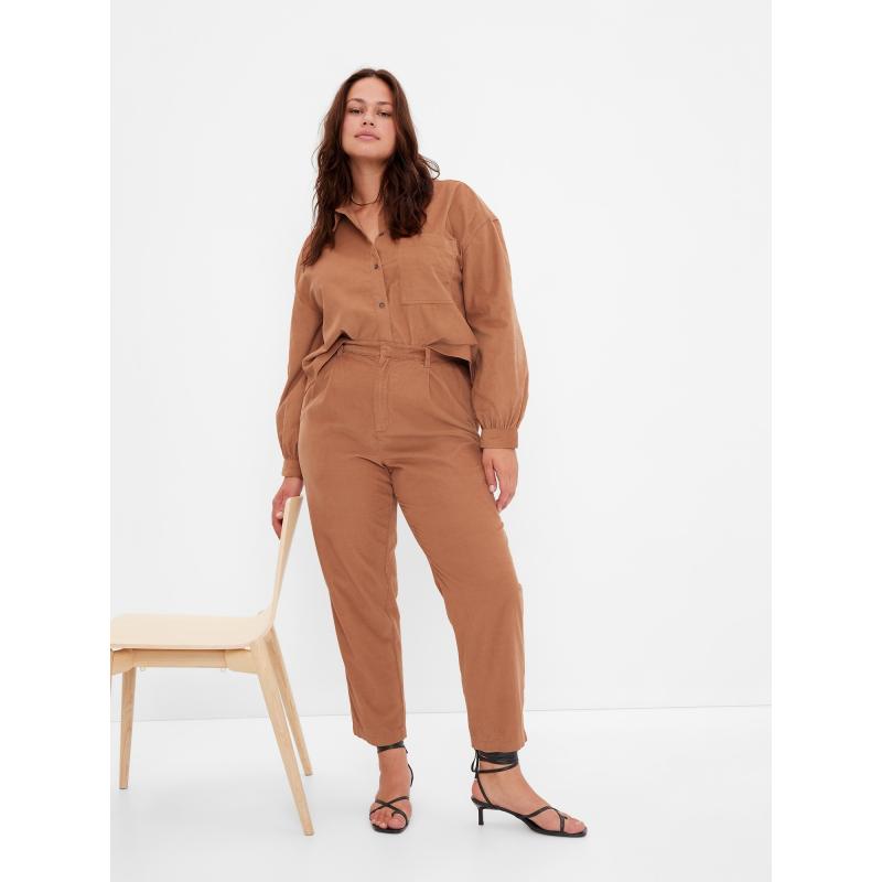 Dámské manšestrové kalhoty.Vysoký pas je v zadní části pružný.Zapínání na skrytý háček a zip.Poutka na pásek.Přední šikmé kapsy.Zadní kapsy a poutka na pásek.Volný střih nohavic.Tento produkt je součástí našeho programu Washwell™ šetřícího vodu. Ve srovnání s běžnými způsoby praní, Washwell™ ušetřil od roku 2016 miliony litrů vody. Více se dozvíte na Gap for Good. 100 % bavlna