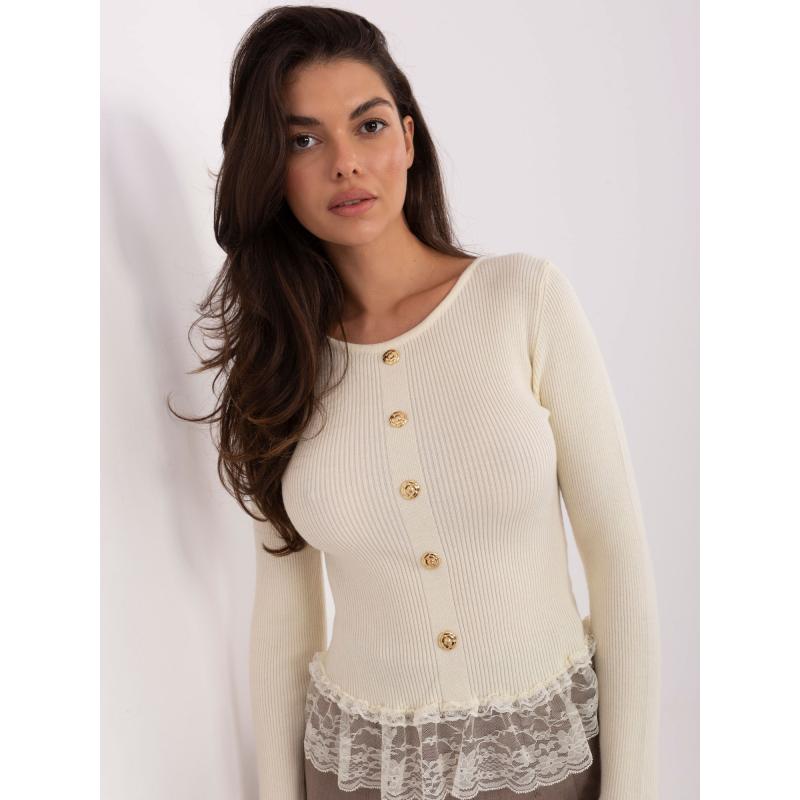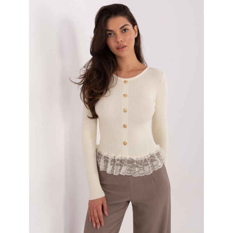 Maslový dámsky sveter s volánikmi na spodnom leme