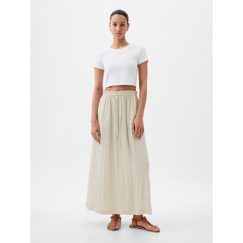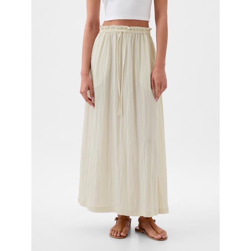 Dámská maxi sukně.Pružný pas se stahovací šňůrkou.Volný střih a boční kapsy.Mačkaný efekt.Menší v pase, doporučujeme zakoupit o číslo větší. 86 % viskóza, 14 % nylon