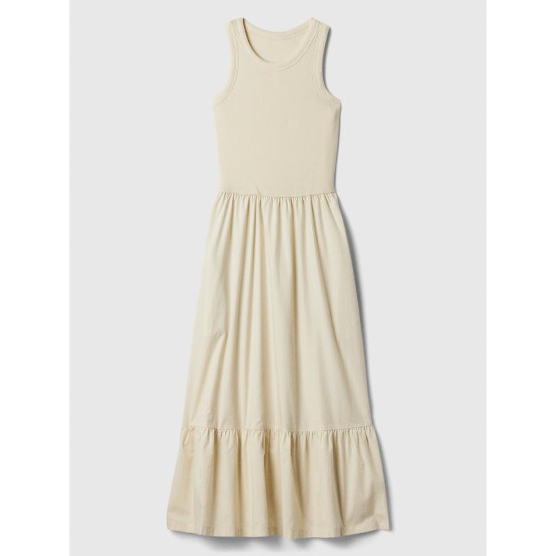 Dámské šaty bez rukávů.Kulatý výstřih a vykrojená záda.Zvýrazněný pas.Dlouhá sukně s volánem. 58 % bavlna, 38 % polyester, 4 % elastan