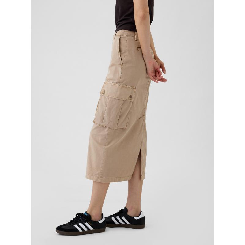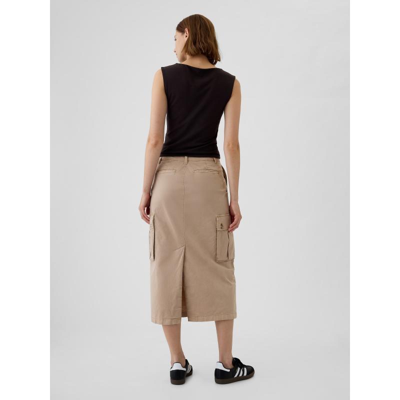 Dámská midi sukně. Zapínání na knoflík a zip. Kapsy vpředu, vzadu a na bocích. Rozparky na zadním lemu. Rovná silueta. Pouzdrový střih, užší v pase a přes boky. Délka pod kolena. Modelky v Gap velikosti 4 měří 172-180 cm s pasem 60-66 cm a boky 84-97 cm. Modelky v Gap velikosti 16 měří 172-180 cm s pasem 86-91 cm a boky 114-127 cm. 97 % bavlna, 3 % elastan