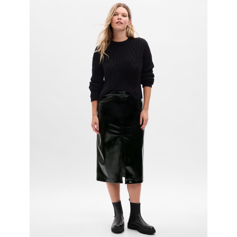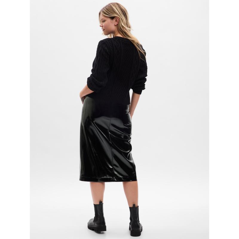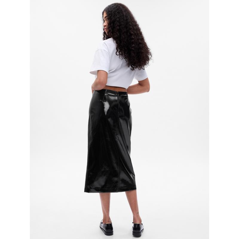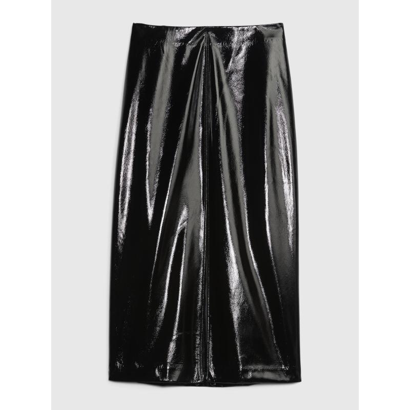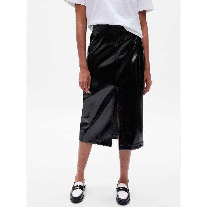Dámská midi sukně.Z umělé kůže.Pevný pas se zapínáním na zip.Rozparek. 100 % polyuretan