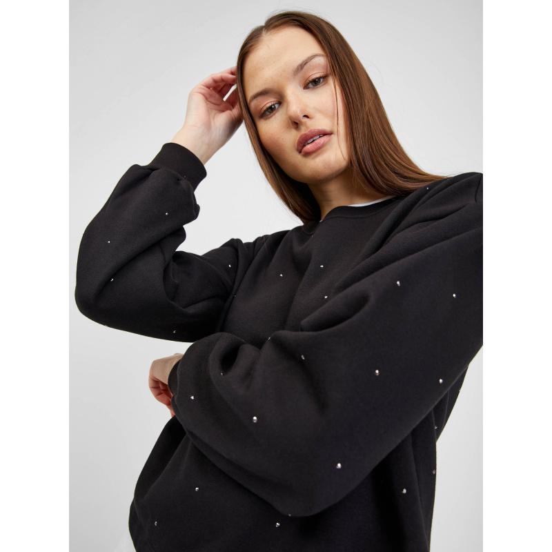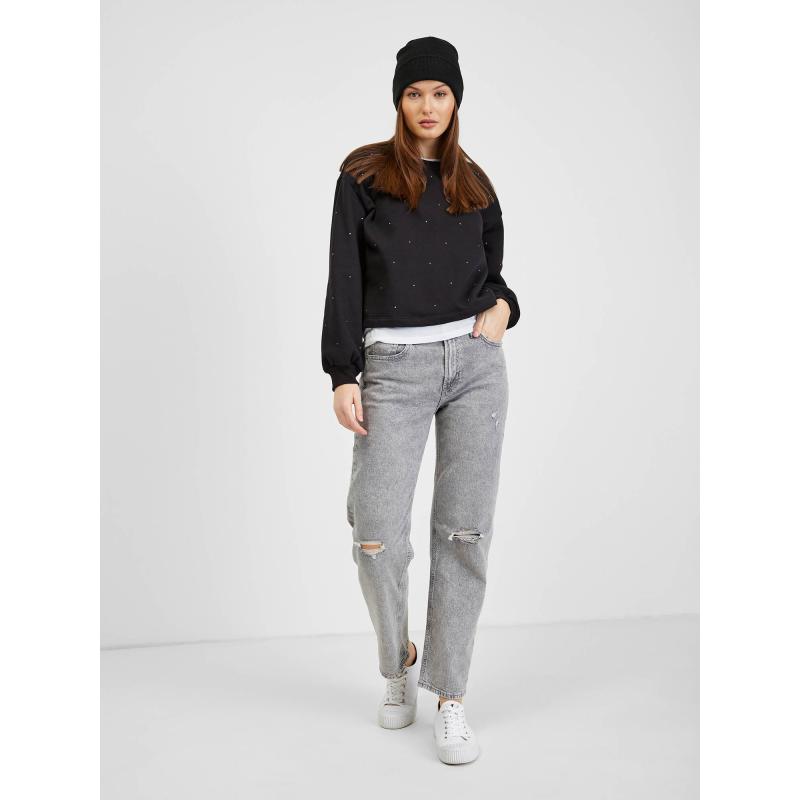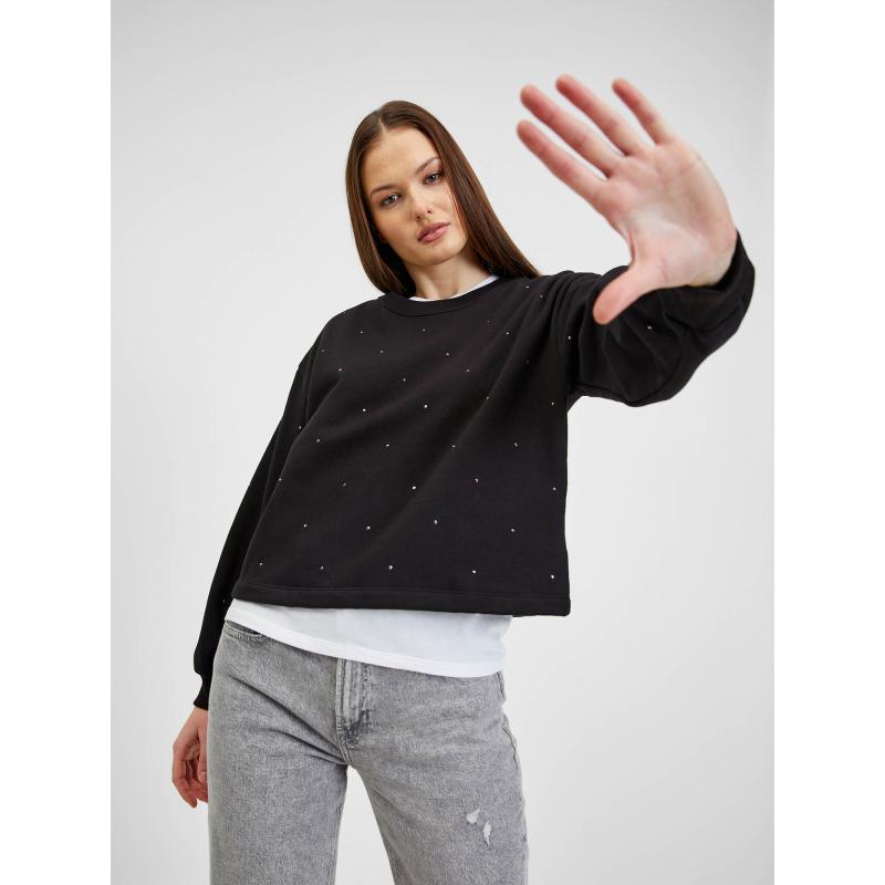 Dámská mikina s kamínky.Crop a rovný střih.S fleece na vnitřní straně.Výstřih ke krku.Dlouhé spadlé rukávy s náplety.S příměsí recyklovaného polyesteru. 77 % bavlna, 23 % recyklovaný polyester
