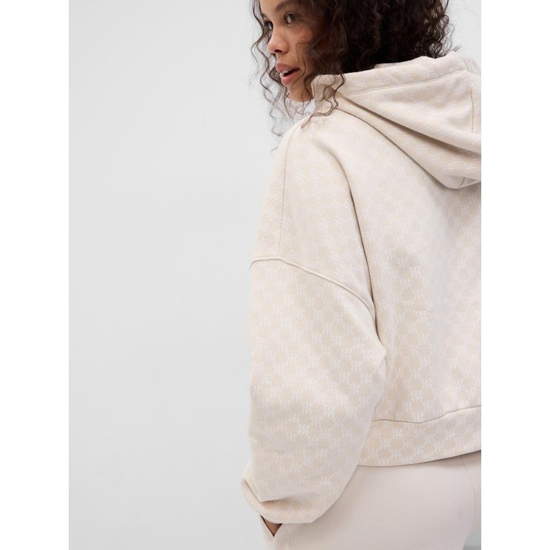 Dámská mikina v kratší délce.Drobný plošný logo vzor.Kapuce se stahovací šňůrkou.Dlouhé spadlé rukávy.Široké a pružné náplety.Měkká teplákovina. 77 % bavlna, 23 % polyester