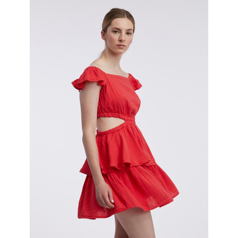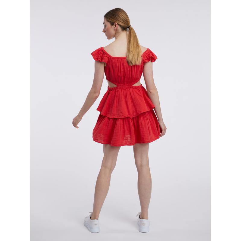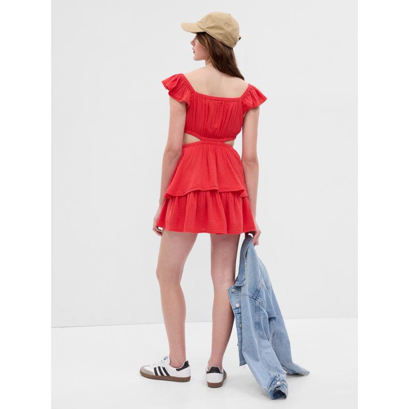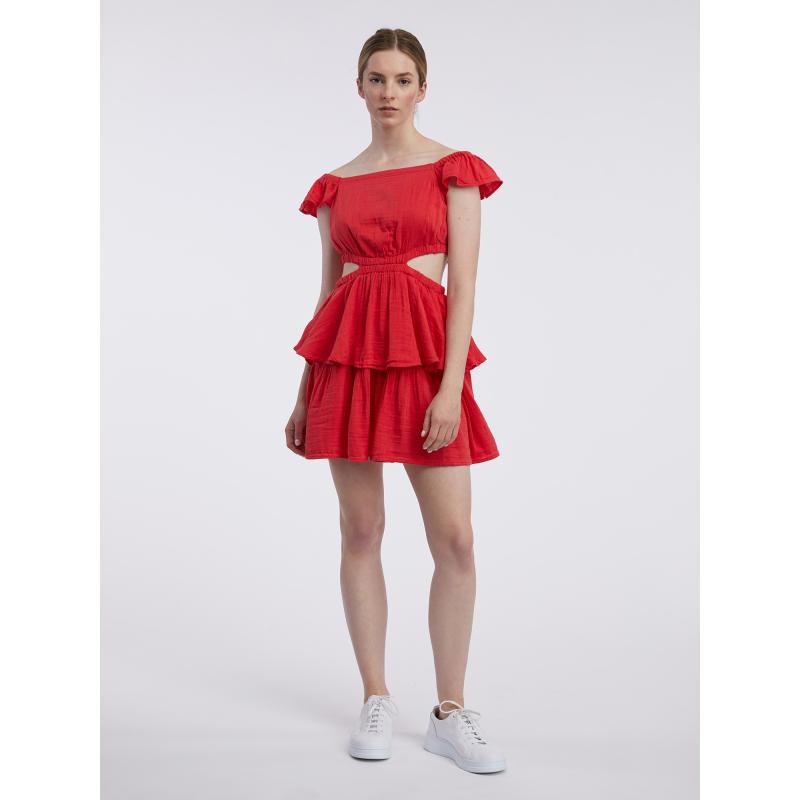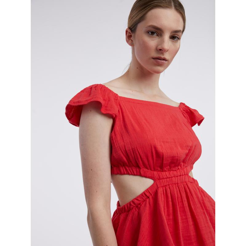 Dámské šaty.Měkký bavlněný mušelín.Mini délka.Volánkové rukávy. 56 % bavlna, 44 % Livaeco by Birla Cellulose™
