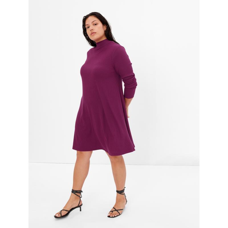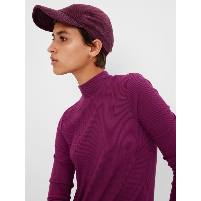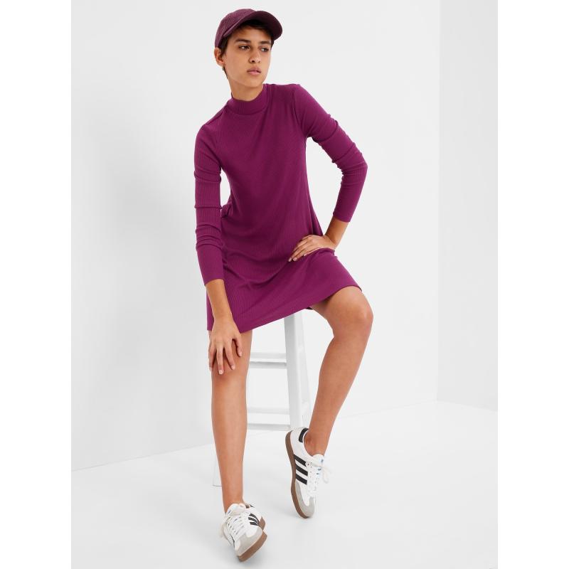 Dámské jednobarevné mini šaty.Drobný žebrovaný vzor.U krku stojáček a dlouhé rukávy.Volný střih do A. 47 % viskóza, 46 % polyester, 7 % elastan