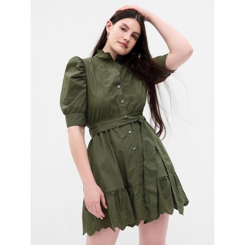 Dámské jednobarevné šatyPo celé délce zapínání na knoflíčkyNabírané krátké balónové rukávyV pase pásek na zavazováníKratší délka a volán. 100 % bavlna