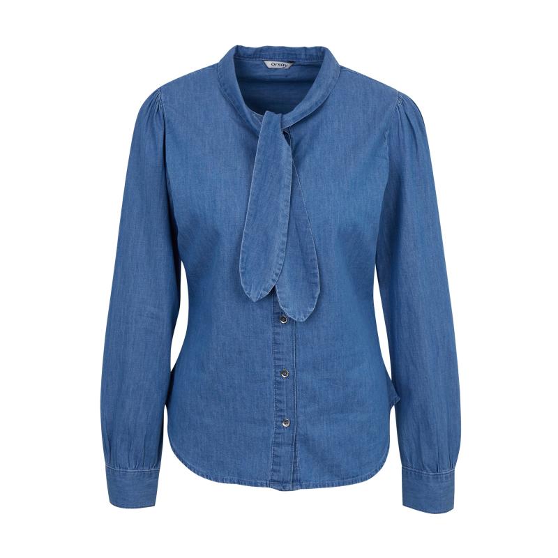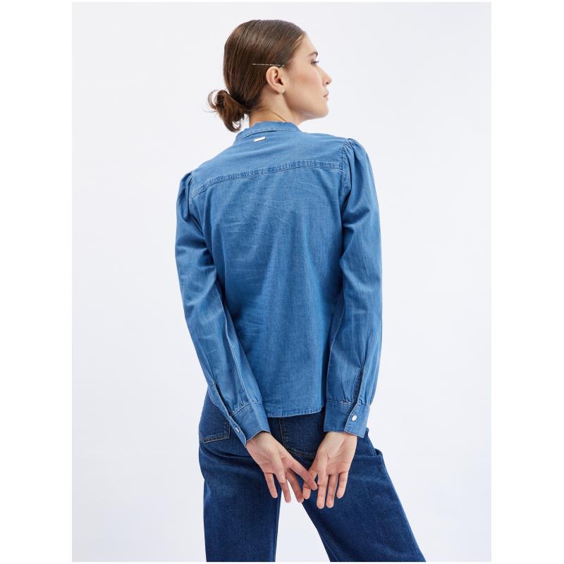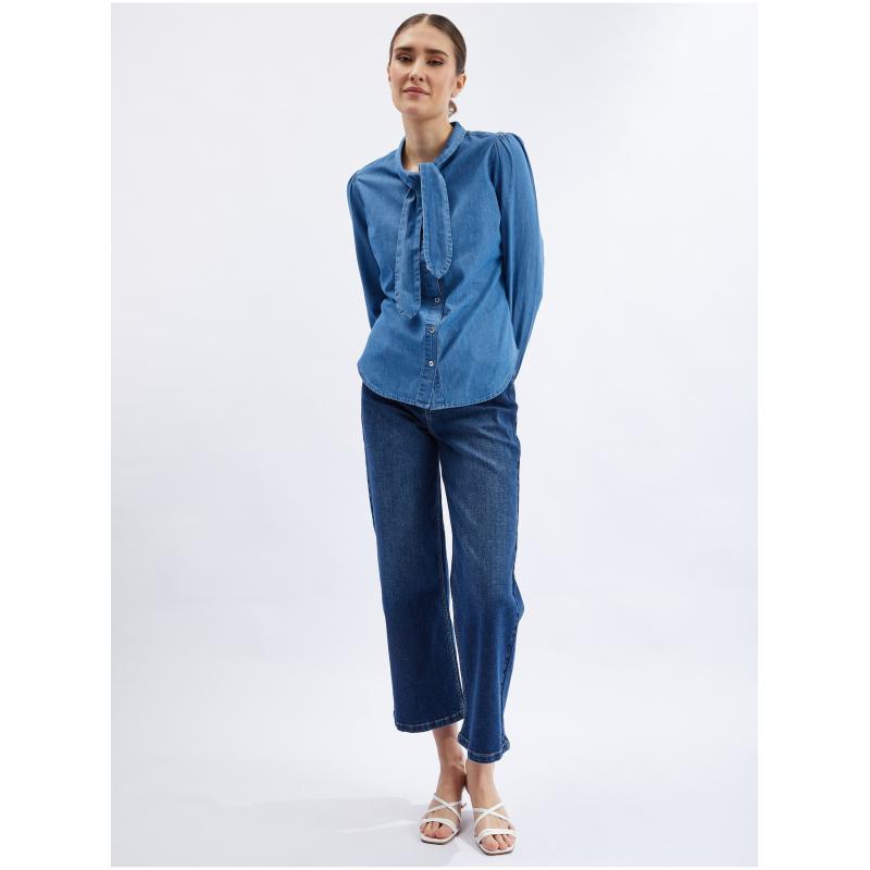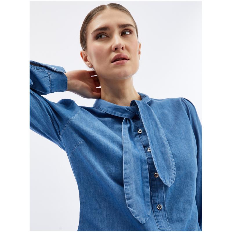 Modrá dámská džínová košile s ozdobným detailem