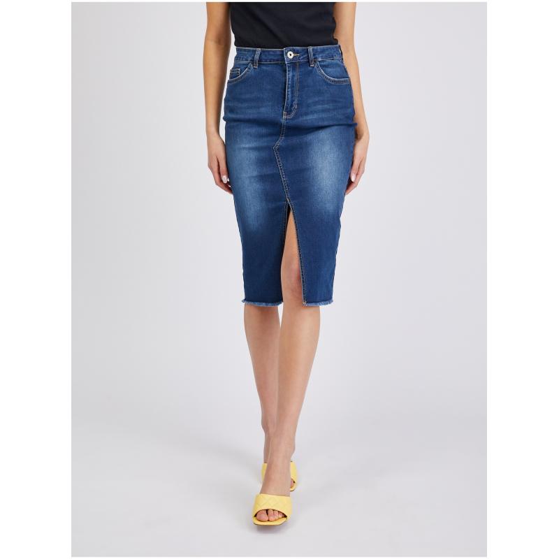 Modrá dámská džínová pouzdrová sukně