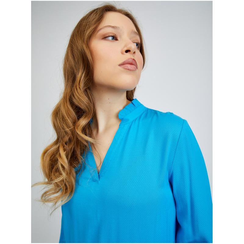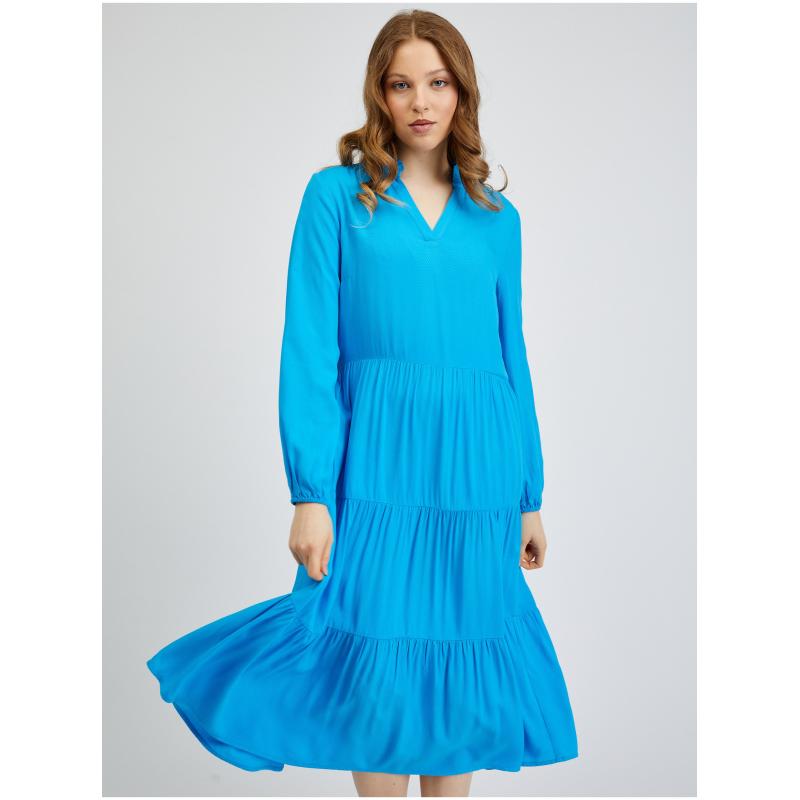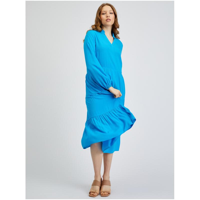 Barva: modráStřih: áčkovýDélka: midiDélka rukávu: dlouhýVýstřih: véčkovýMateriál: 100 % viskózaKód produktu: 461067545000