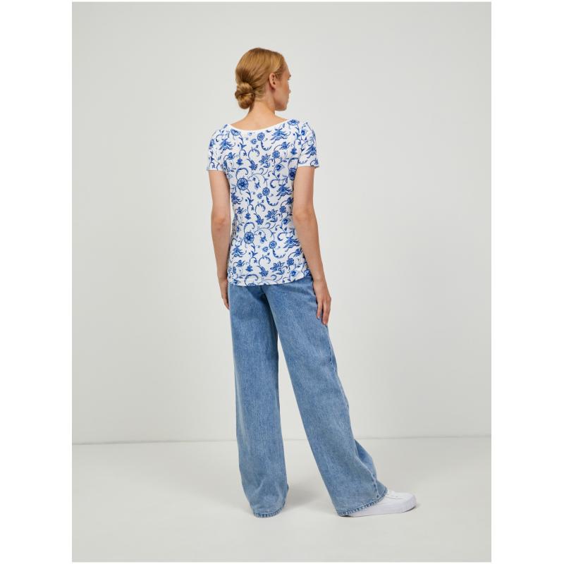 Barva: bíláStřih: regular fitDélka rukávu: krátkýVýstřih: kulatýVzor: květinovýMateriál: 97 % viskóza, 3 % elastanKód produktu: 159264-98