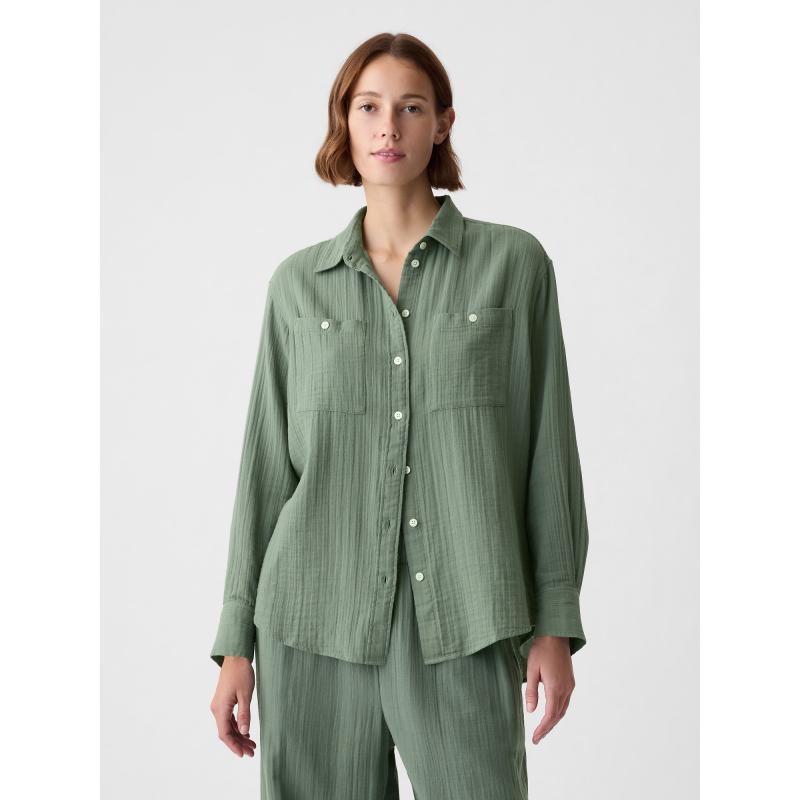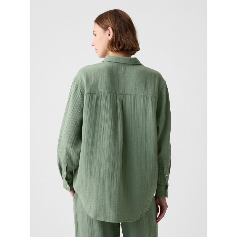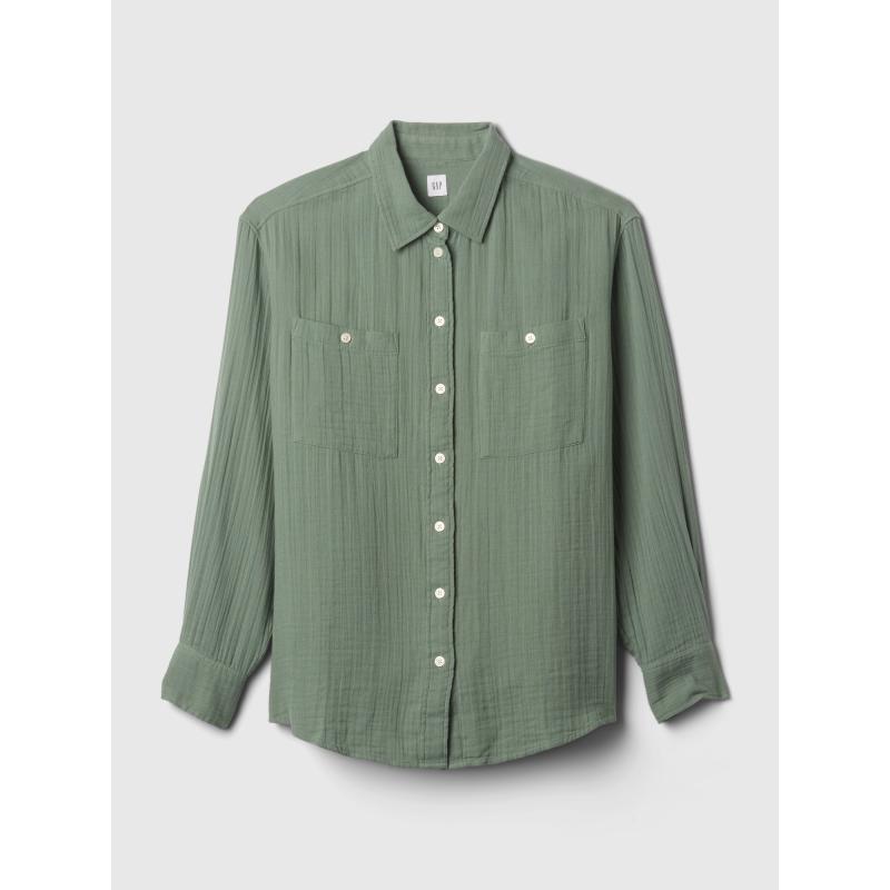 Dámská mušelínová košile.Límeček a zapínání na knoflíky.Dlouhé rukávy s manžetou.Našitá kapsička.Mačkaný efekt.Oversize - Big Shirt.Modelka má na sobě velikost S.Míry: výška 180 cm, pas 66 cm, boky 97 cm. 100 % bavlna
