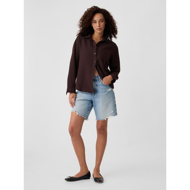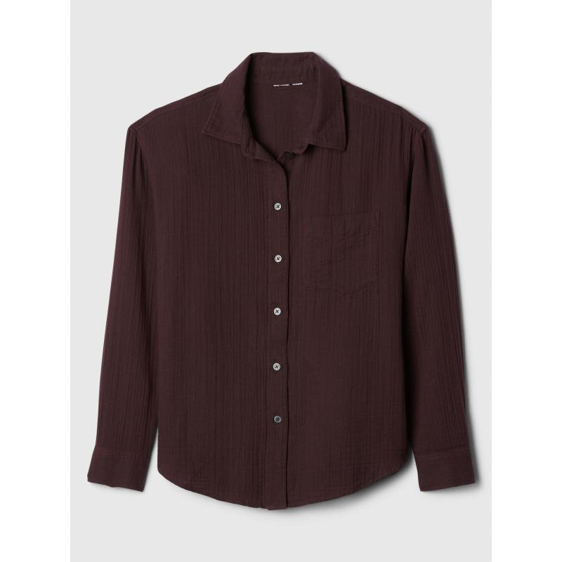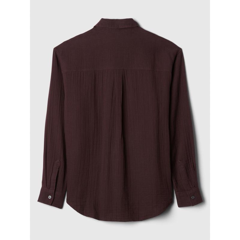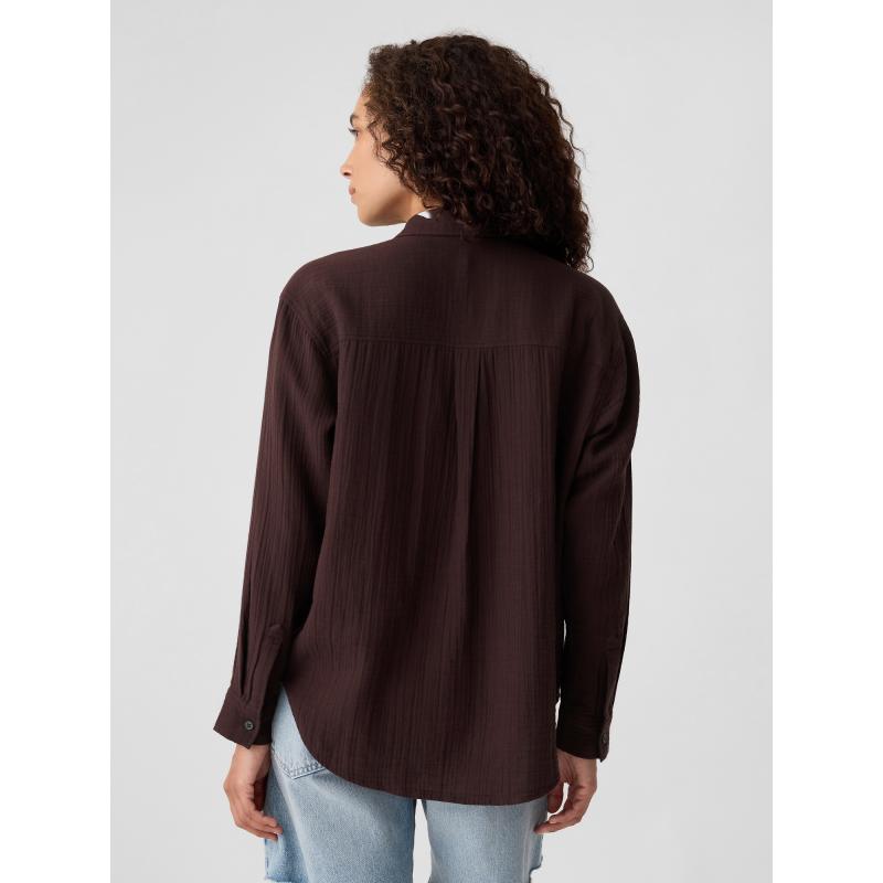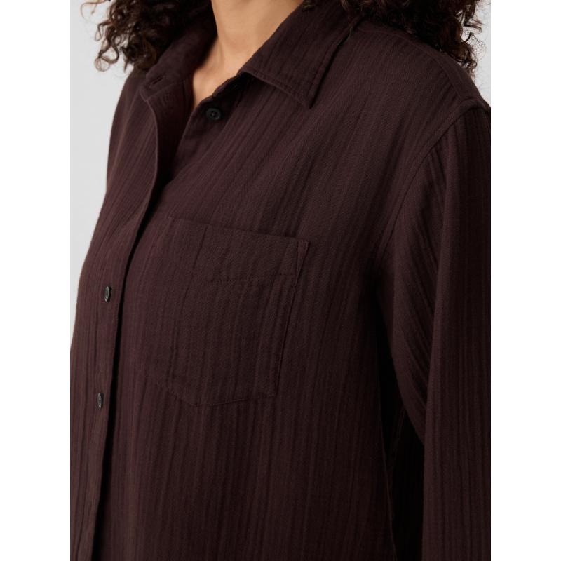 Dámská mušelínová košile.Límeček a zapínání na knoflíky.Dlouhé rukávy s manžetou.Našitá kapsička a mačkaný efekt.Oversize. 100 % bavlna