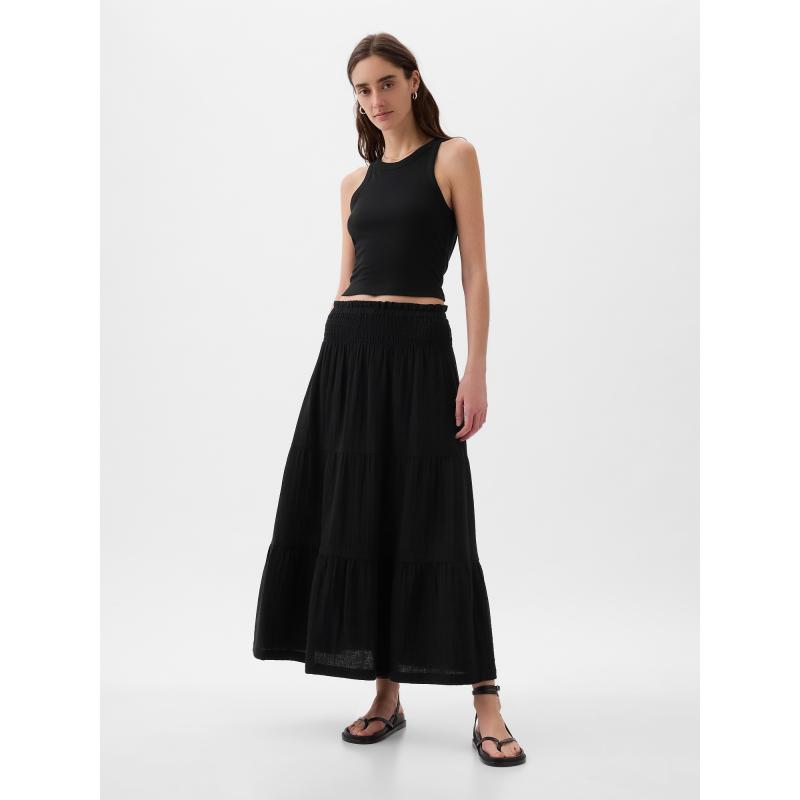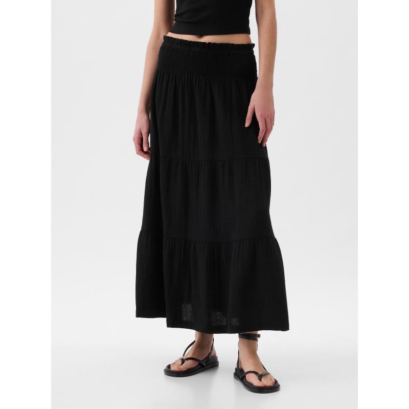Mušelínová sukně.Pružný pas.Maxi délka.Nabírané volány.Jednobarevná.Modelka má na sobě velikost S.Míry: výška 180 cm, pas 66 cm, boky 97 cm. 100 % bavlna