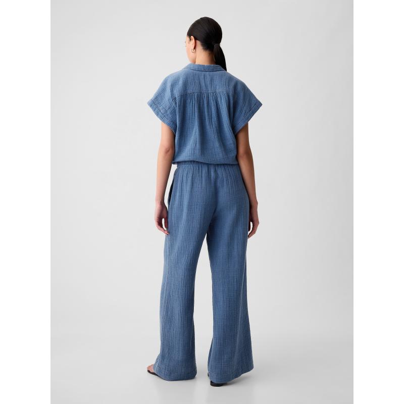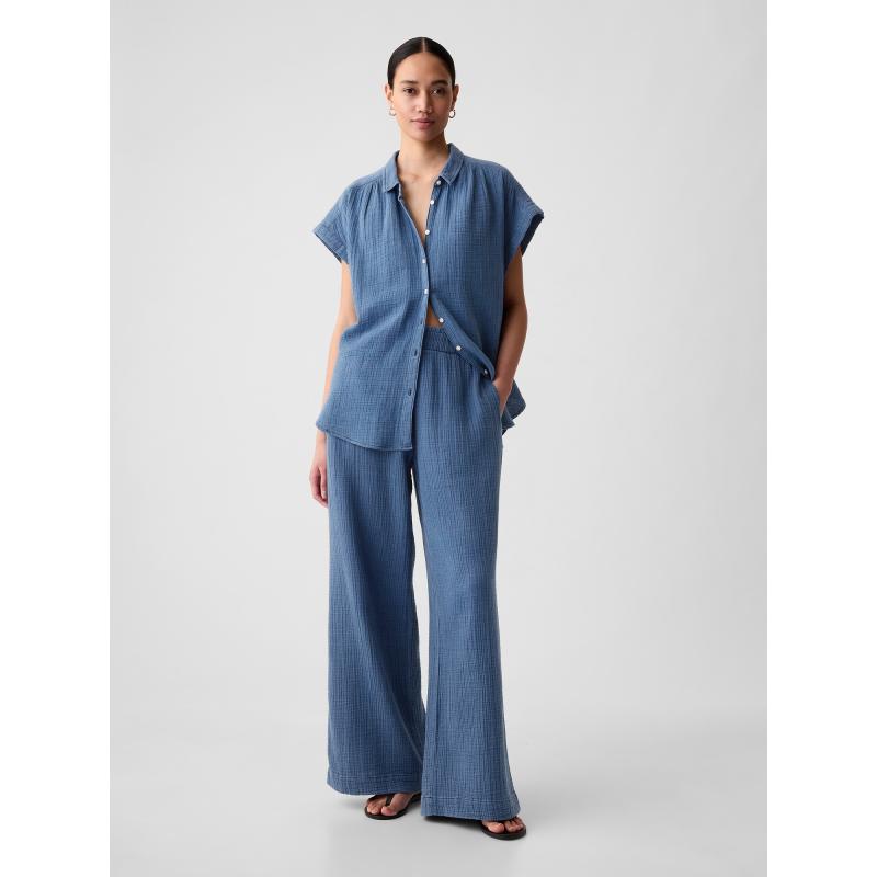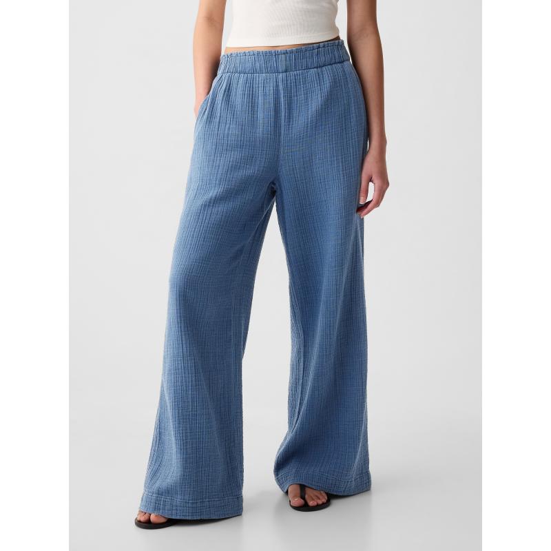 Mušelínové kalhoty wide leg
