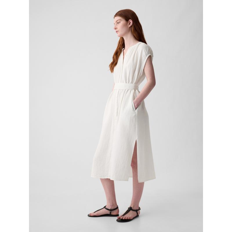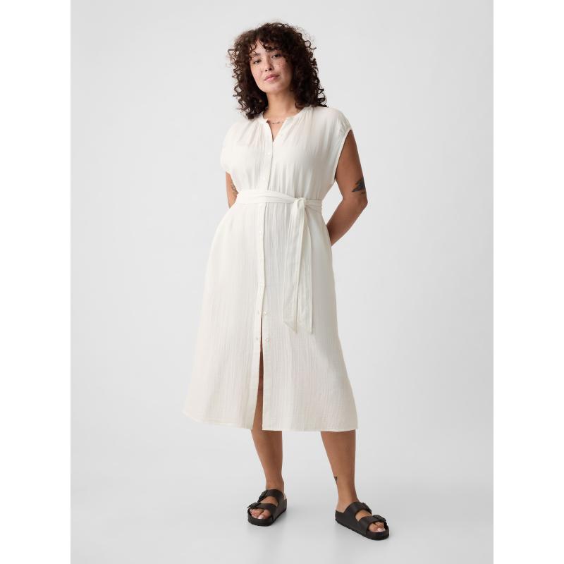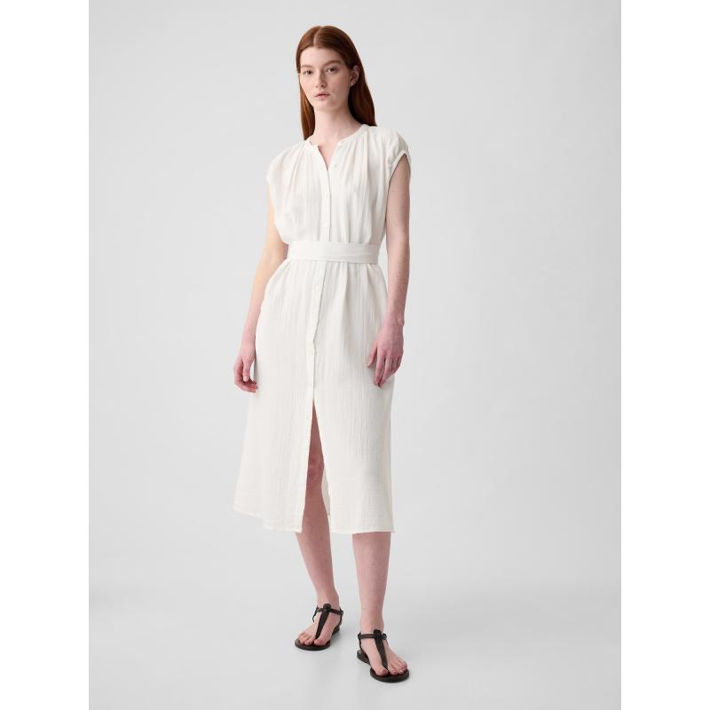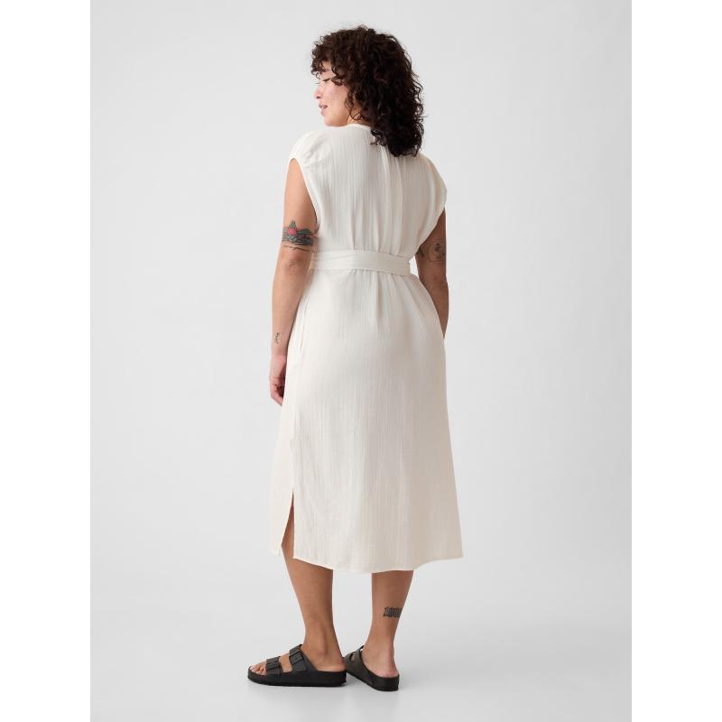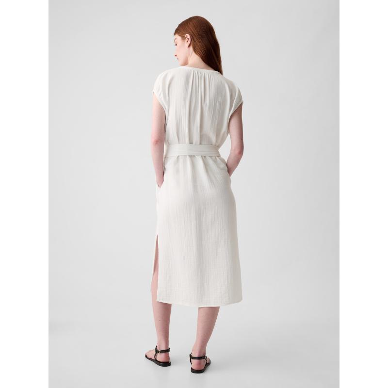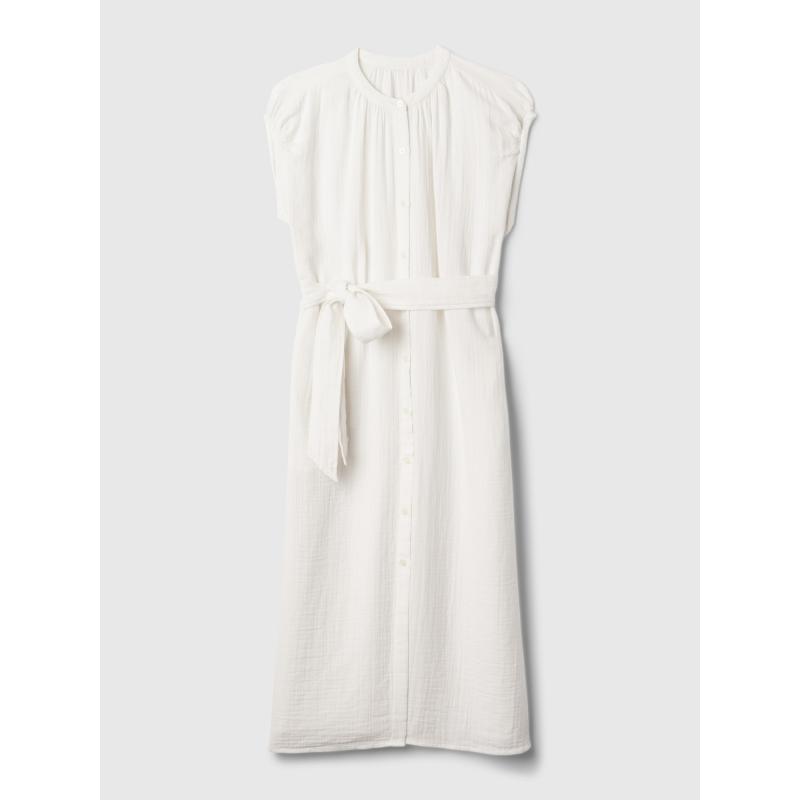 Dámské mušelínové midi šaty.Kulatý výstřih ke krku.Zapínání na knoflíčky.Boční kapsy.Pásek na zavazování.Jednobarevné.Modelka má na sobě velikost S.Míry: výška 180 cm, pas 66 cm, boky 97 cm 100 % bavlna