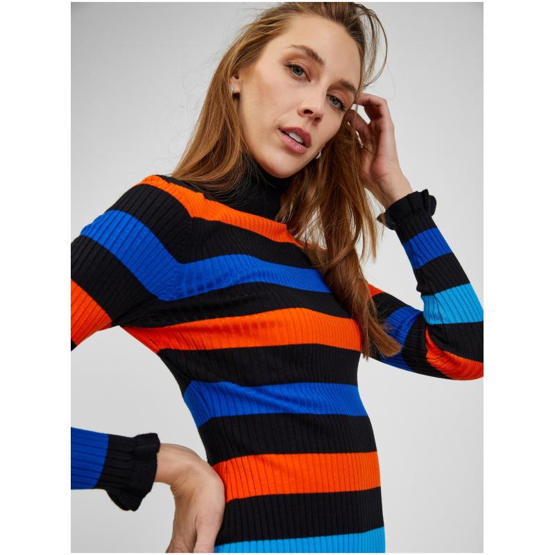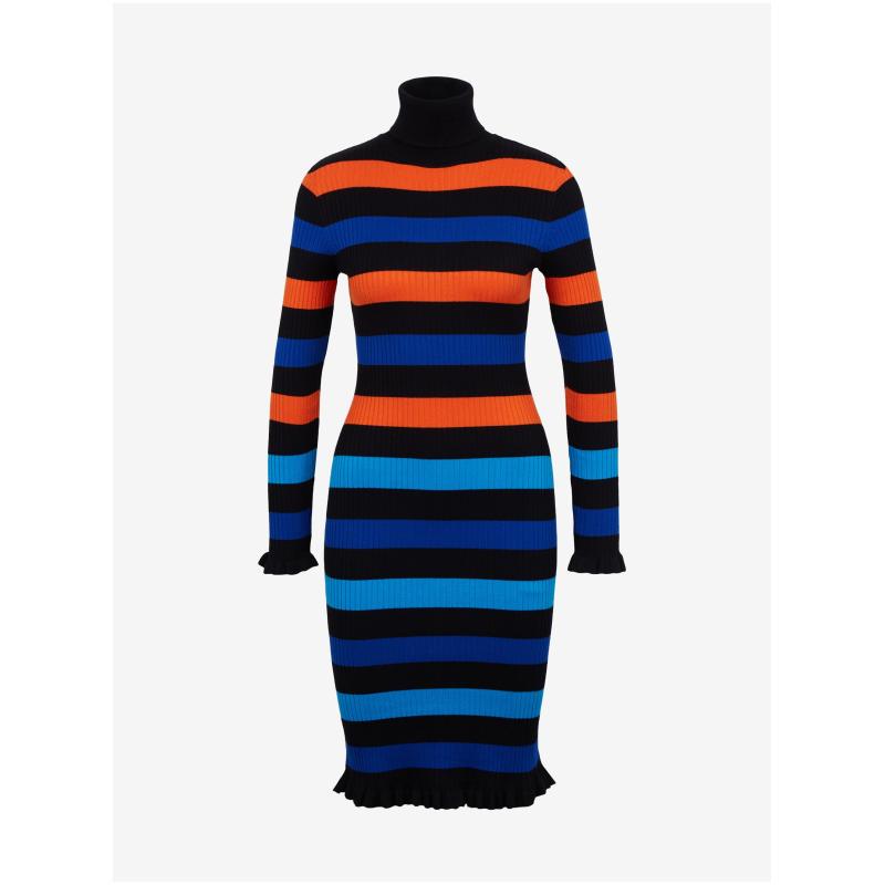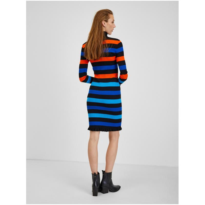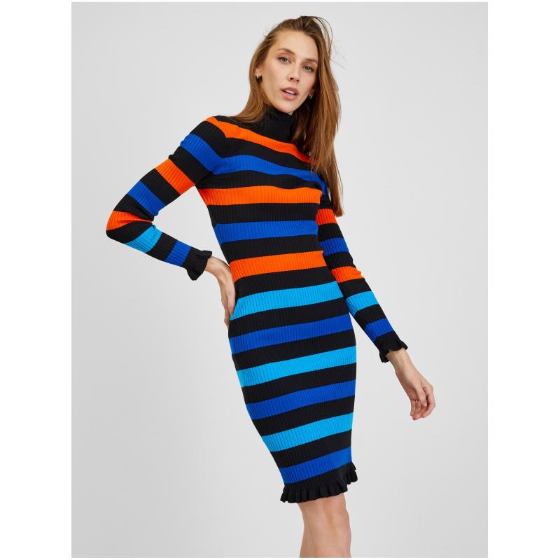 Oranžovo-modré dámské pruhované šaty