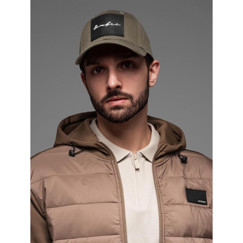 Pánská baseballová čepice s kšiltem a velkou nášivkou – khaki V2 OM-ACCS-0101