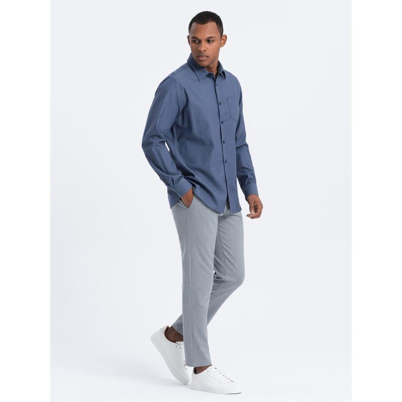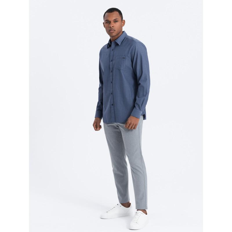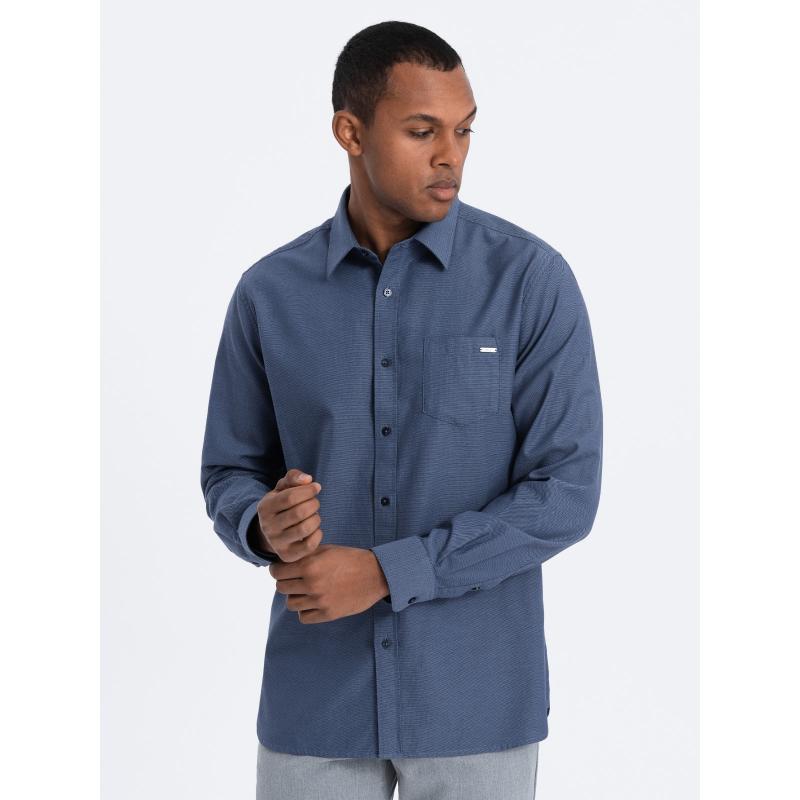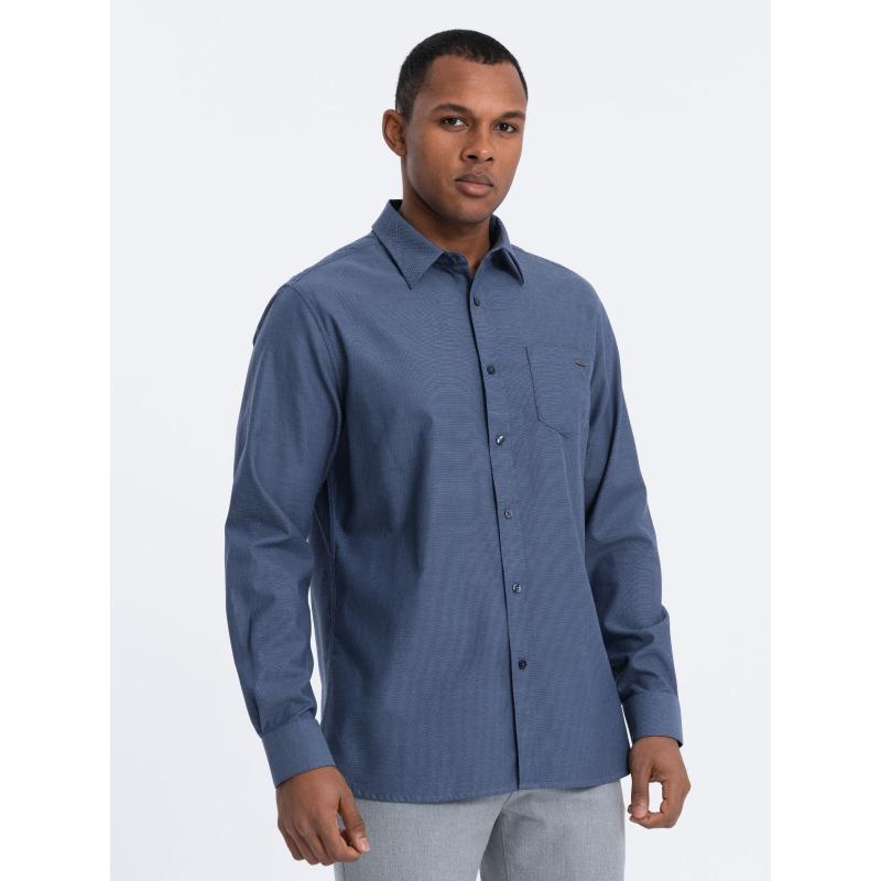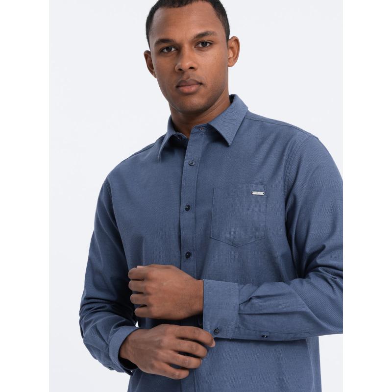 Víte, jak vypadá dobrý vkus ve 3D? Pokud ne, máte jedinečnou příležitost. Stačí si pořídit tento kousek a mrknout do zrcadla. Pánská bavlněná košile s kapsou REGULAR FIT V3 OM-SHCS-0147 modrá totiž přináší