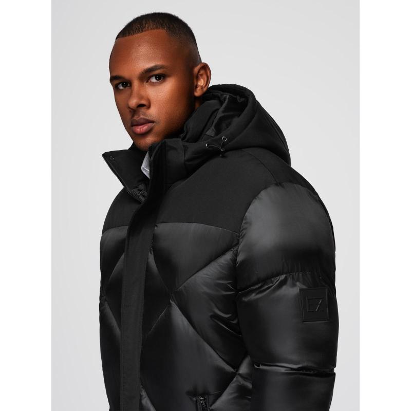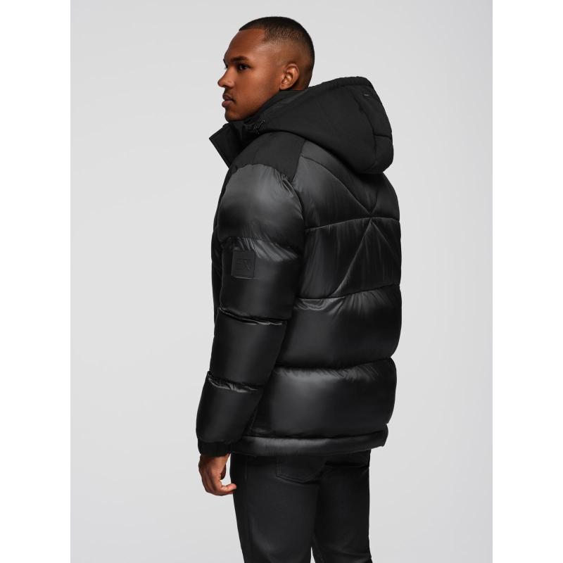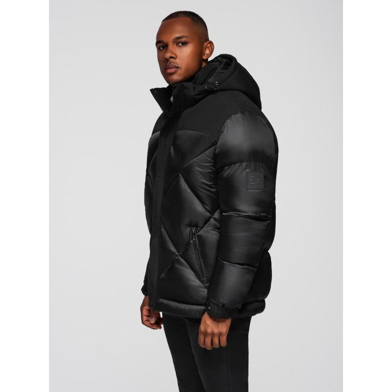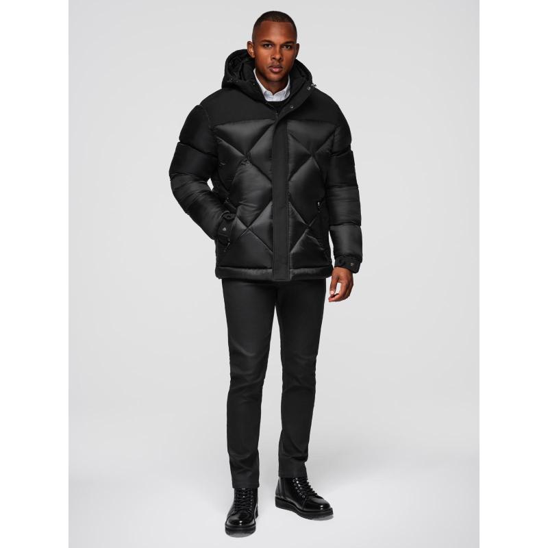 Pánská bunda s kapucí a geometrickým prošíváním – černá V1 OM-JAHP-0237