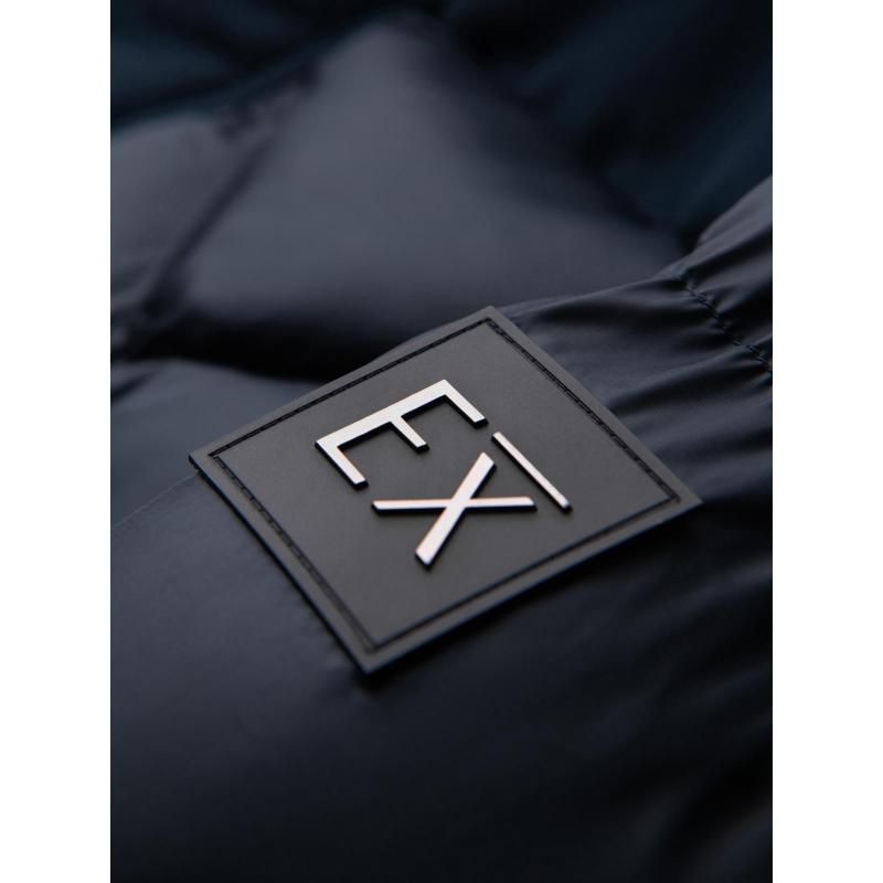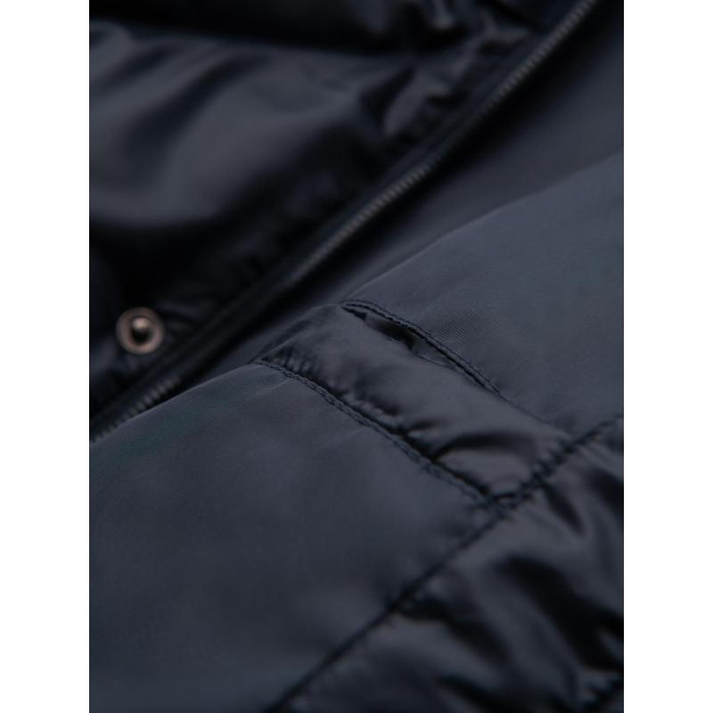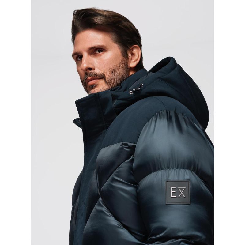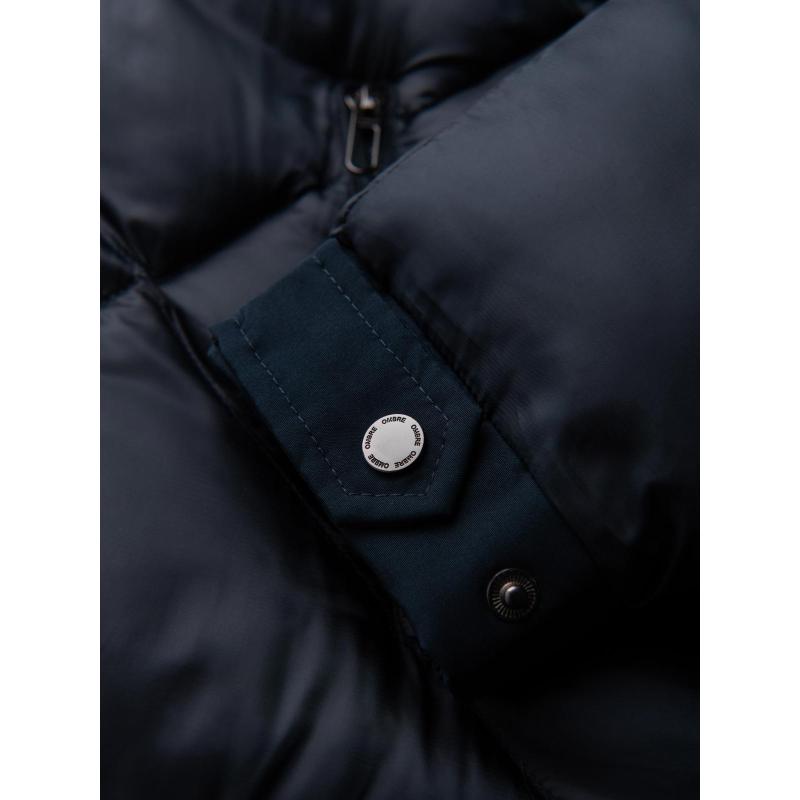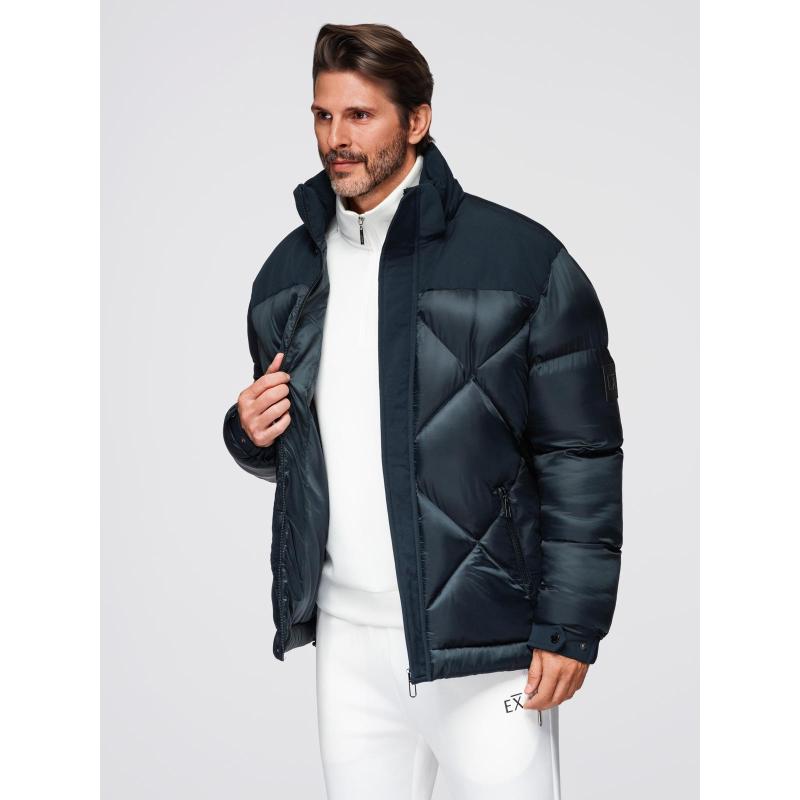 Pánská bunda s kapucí a geometrickým prošíváním ve tvaru diamantů – tmavě modrá V2 OM-JAHP-0237