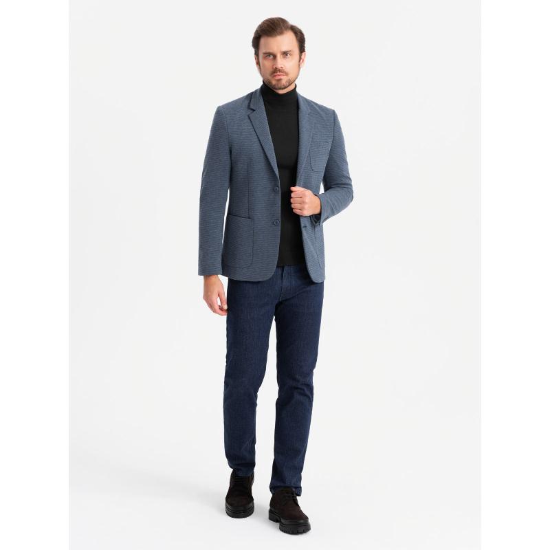 Pánská bunda s podšívkou s kapucí a vysokým límcem - tmavě modrá V3