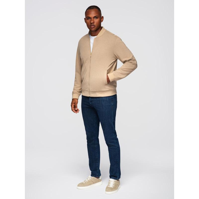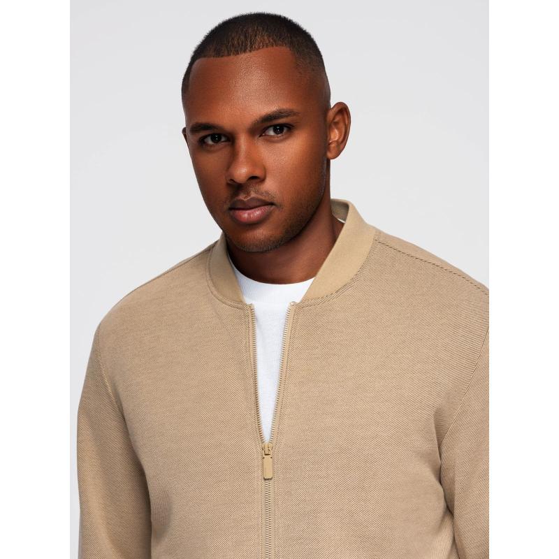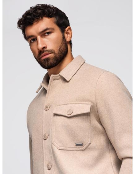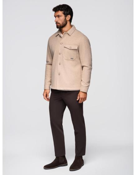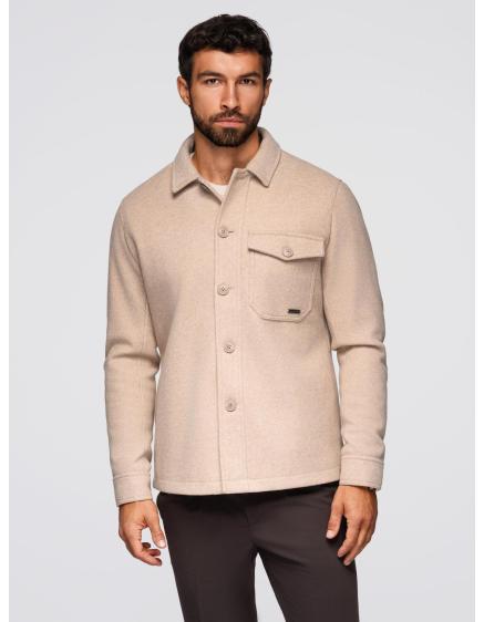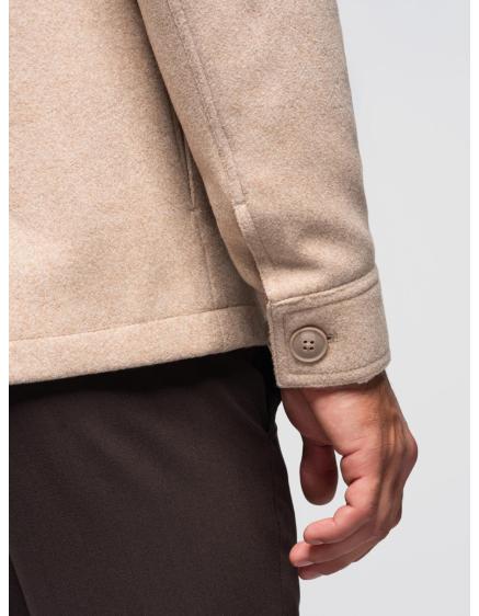 Pánská bunda s raglánovými rukávy – teplá béžová V2 OM-JANP-0159