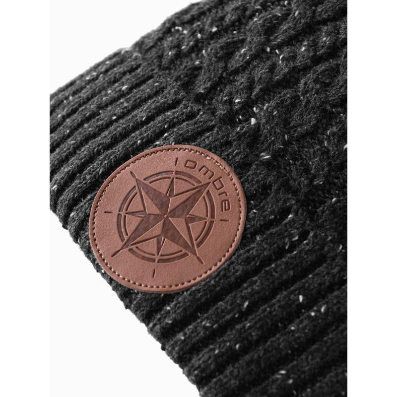 Pánská čepice s kulatou reliéfní nášivkou – grafitová V1 OM-ACWH-0121