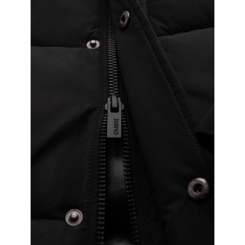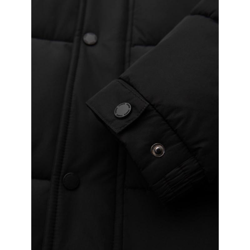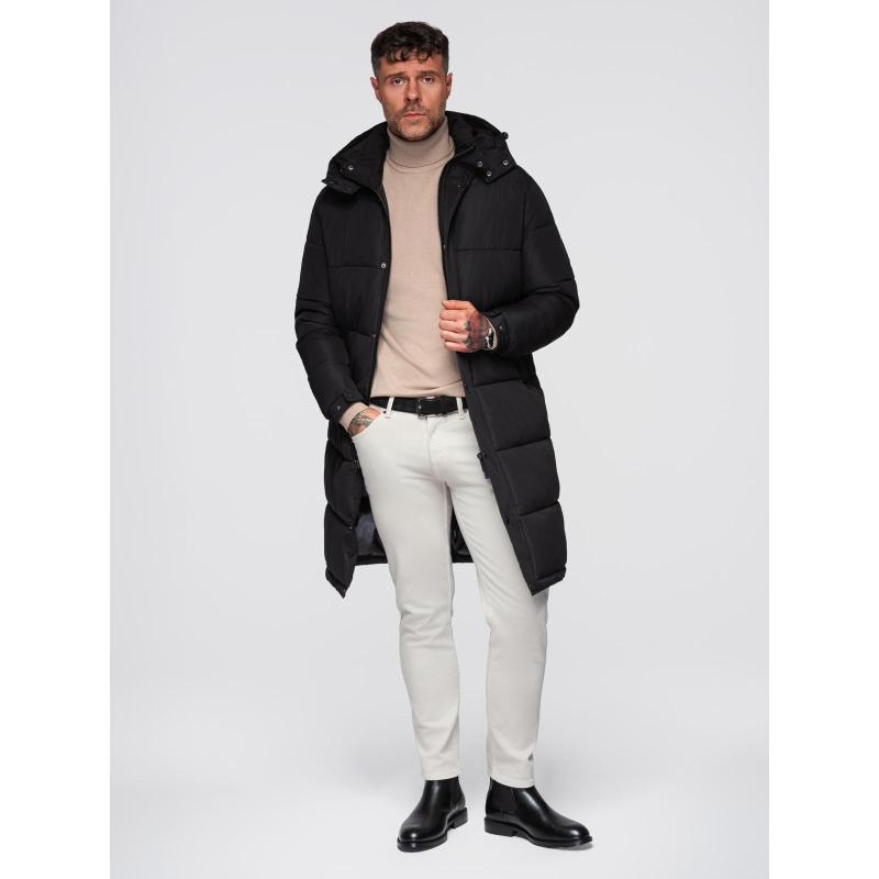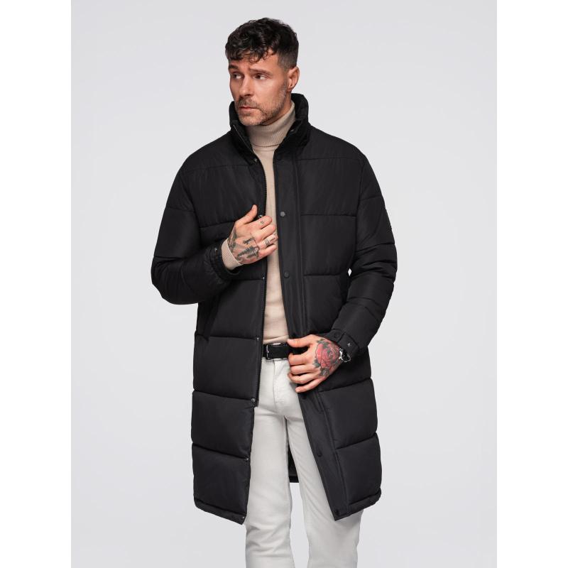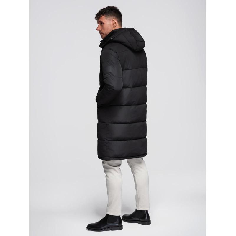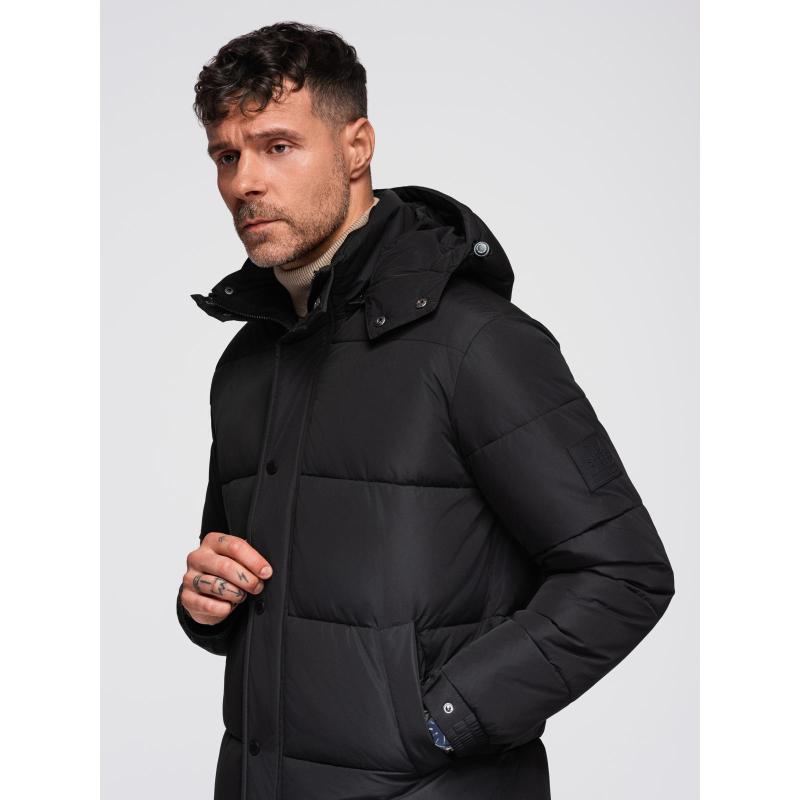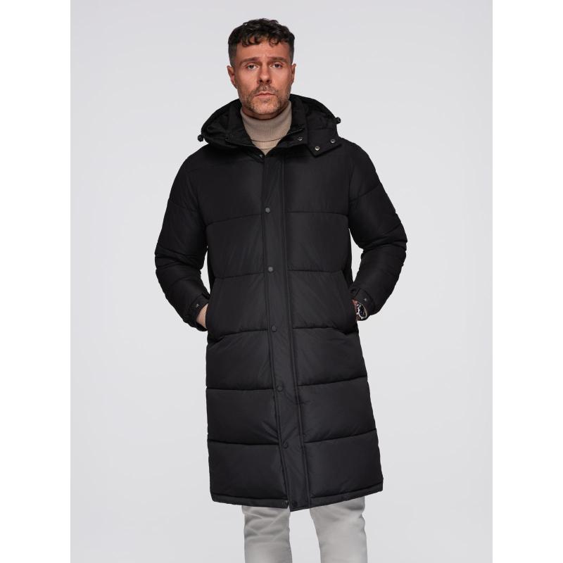 Pánská dlouhá prošívaná zimní bunda s kapucí – černá V1 OM-JALJ-0309