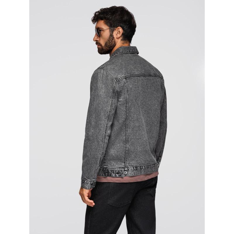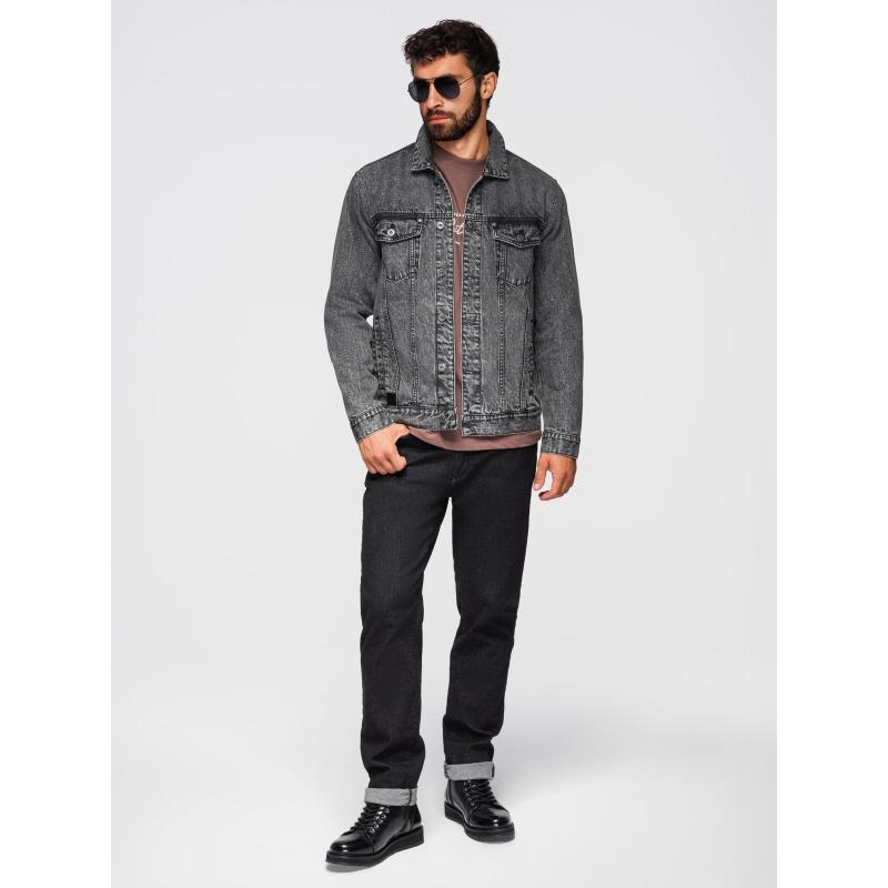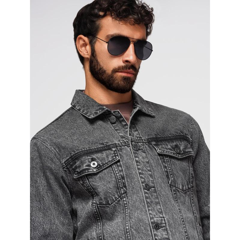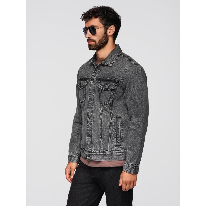 Pánská džínová bunda katana s efektem vyprání – černá V3 OM-JADJ-0219
