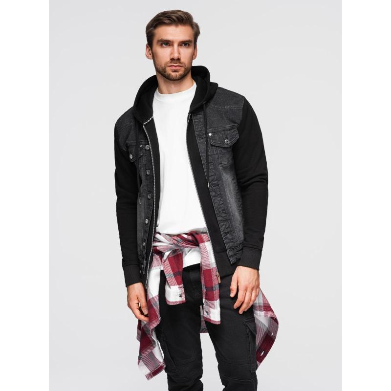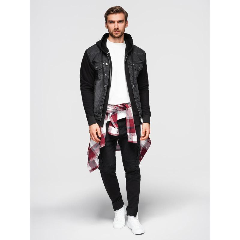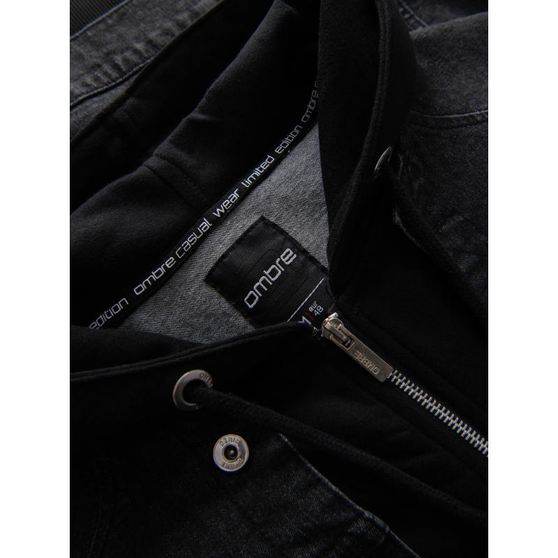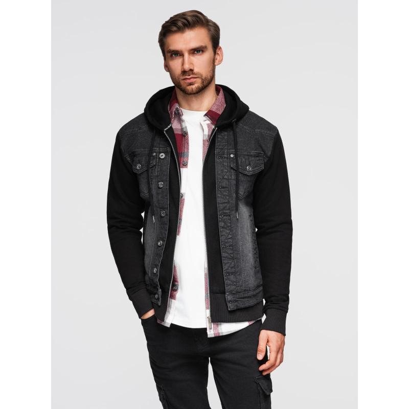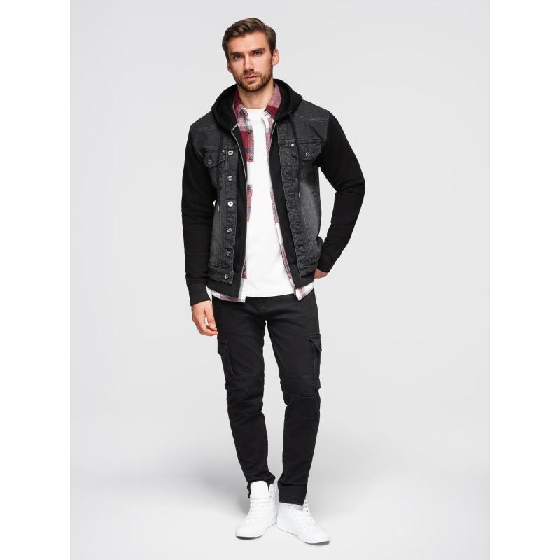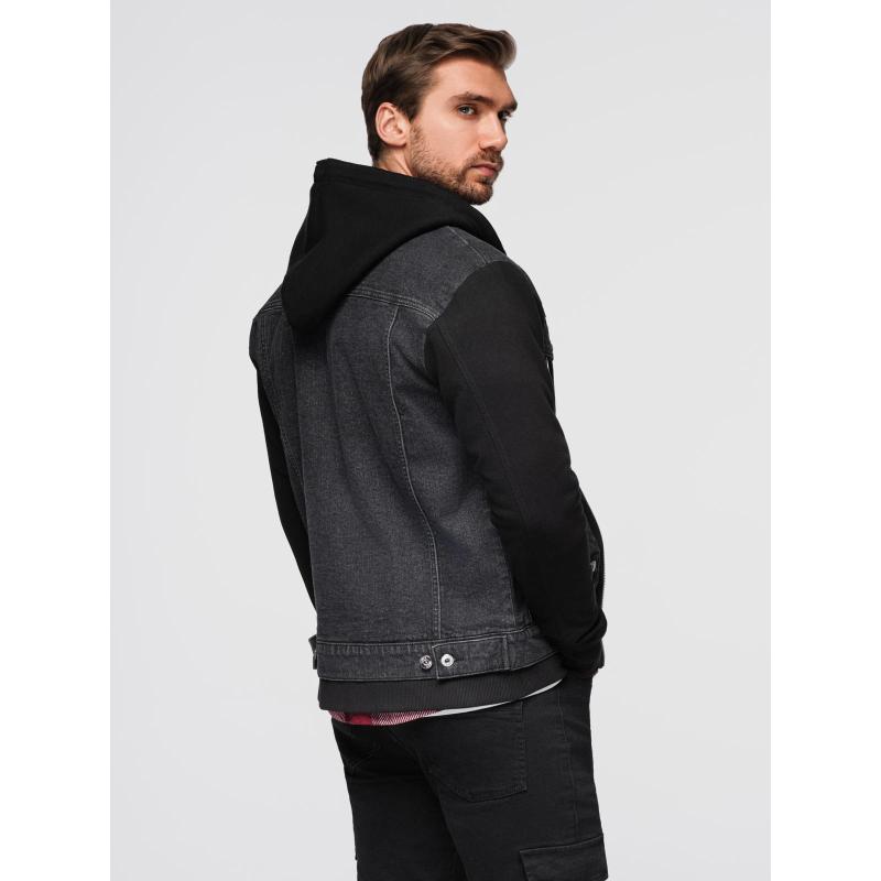 Pánská džínová bunda katana s efektem vyprání – grafitová V5 OM-JADJ-0219