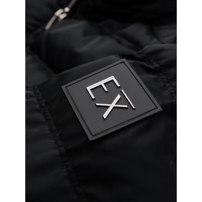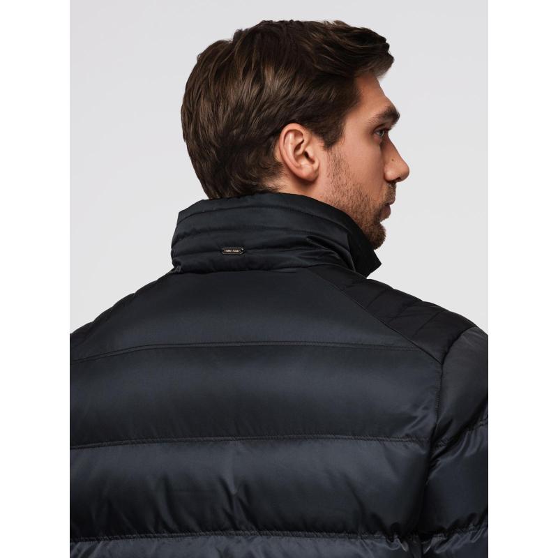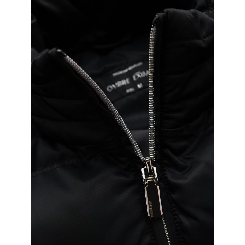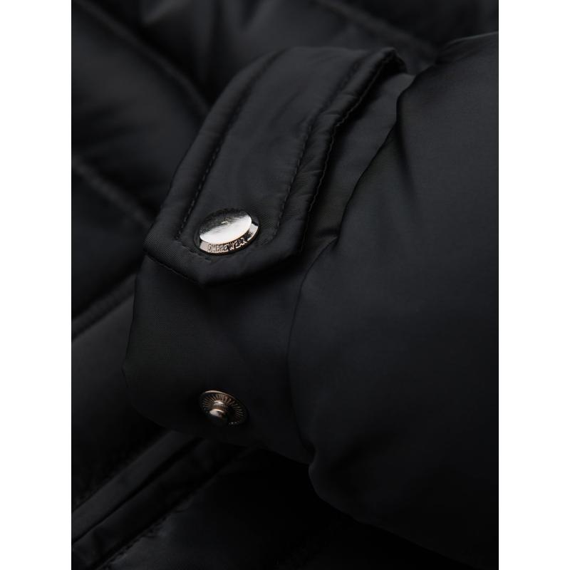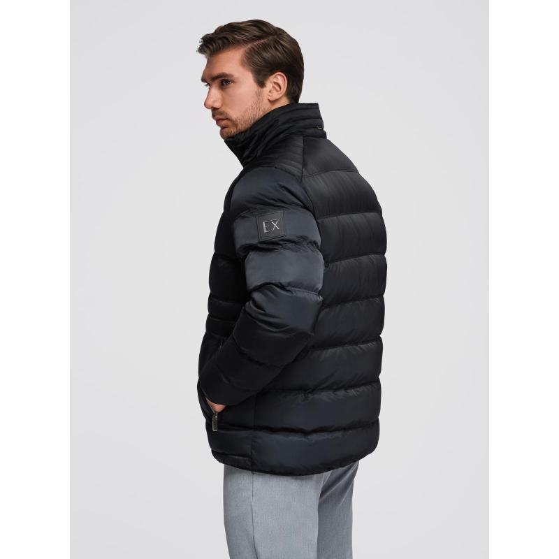 Pánská džínová bunda s pletenými rukávy a kapucí – modro-černá V2 OM-JADJ-0220