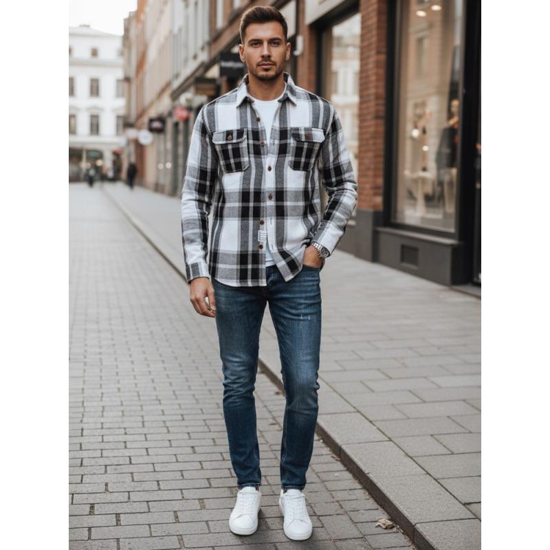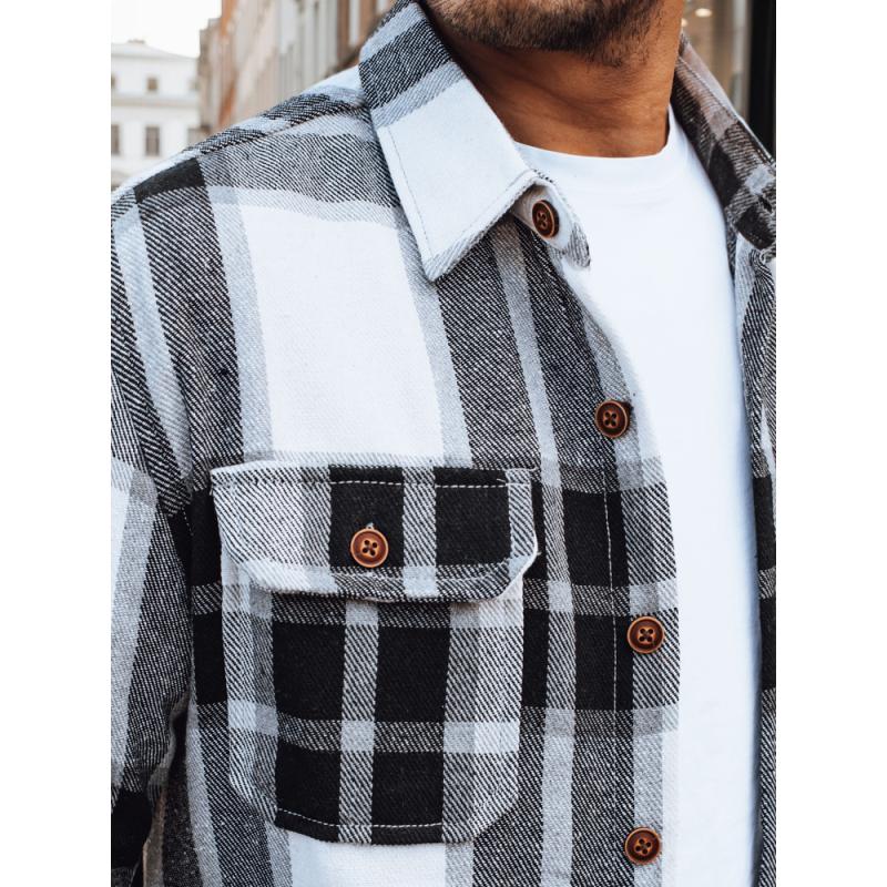 Pánská flanelová košile s černobílým kostkovaným vzorem